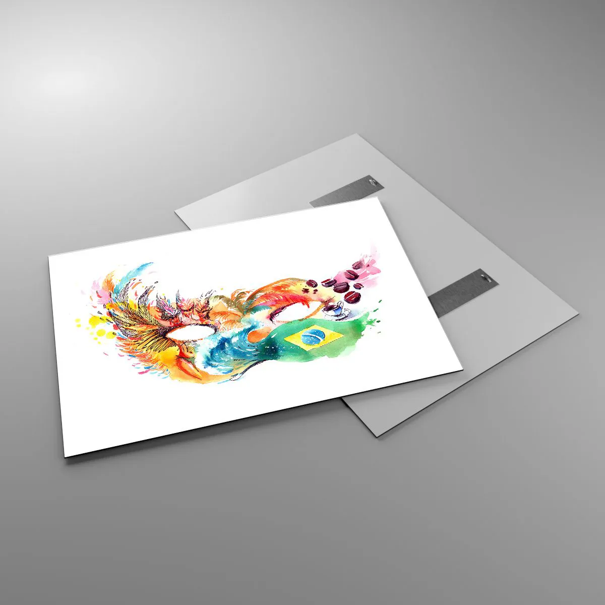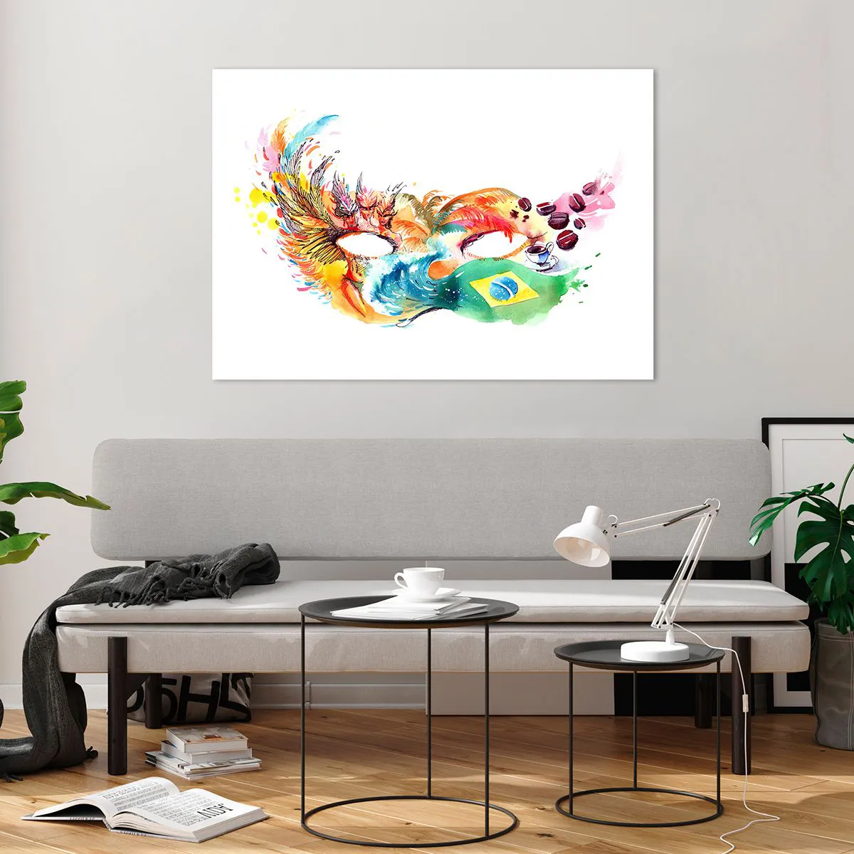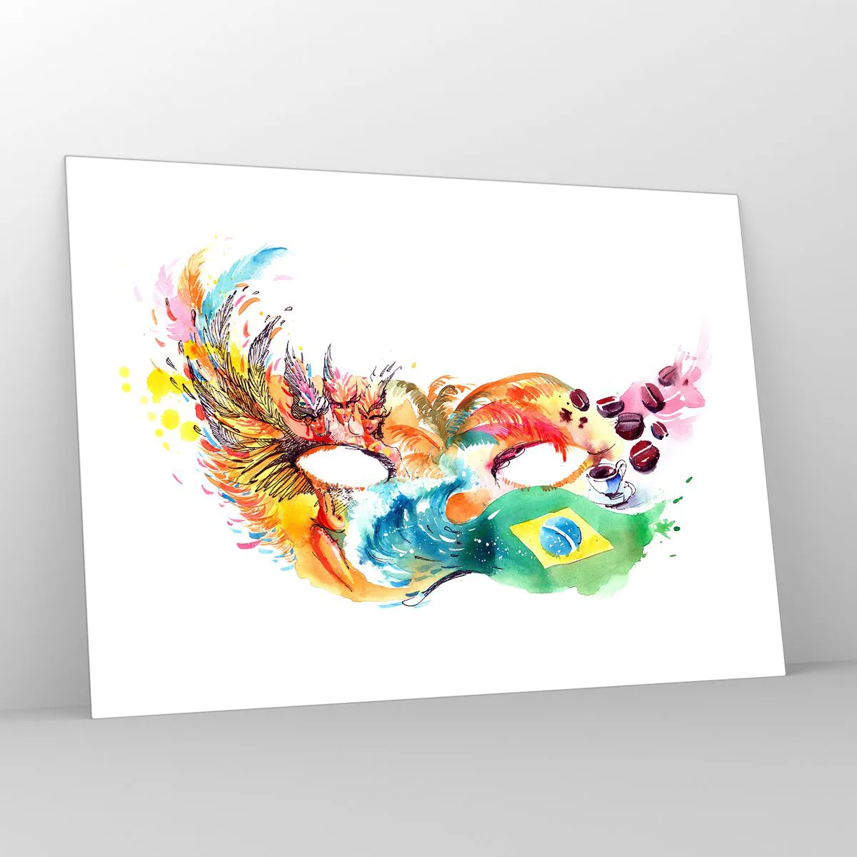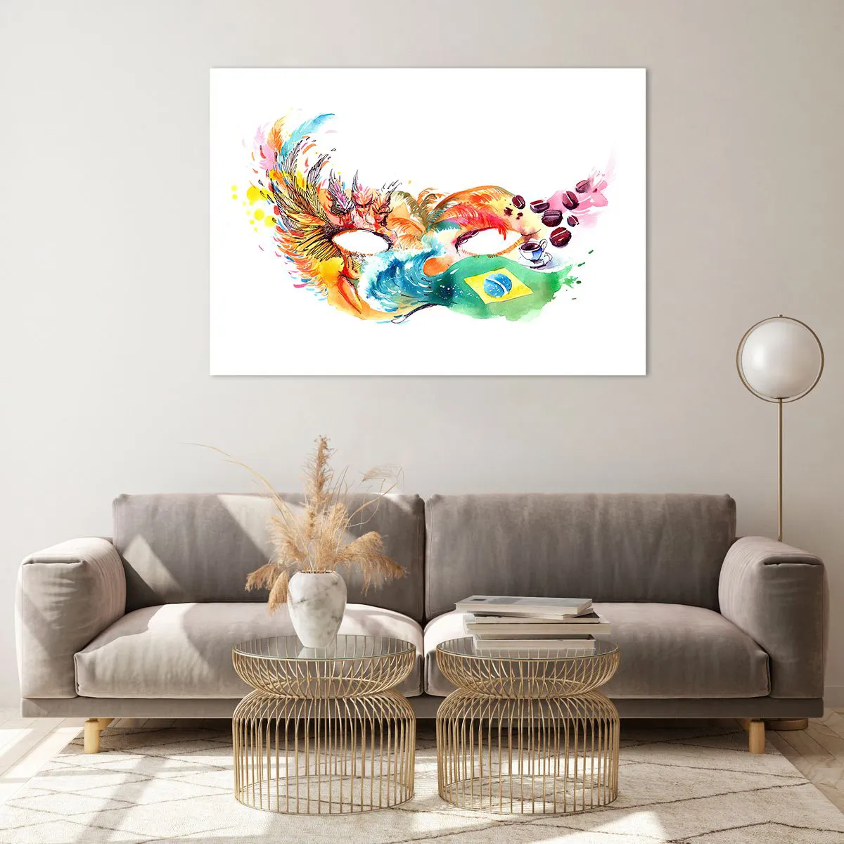 Glasbild - Bild auf glas - Eine farbenfrohe Maske, inspiriert vom brasilianischen Karneval - 100x70cm - Brasilien begrüßt Samba - Moderne Wanddekoration für Wohnzimmer und Schlafzimmer ARTTOR