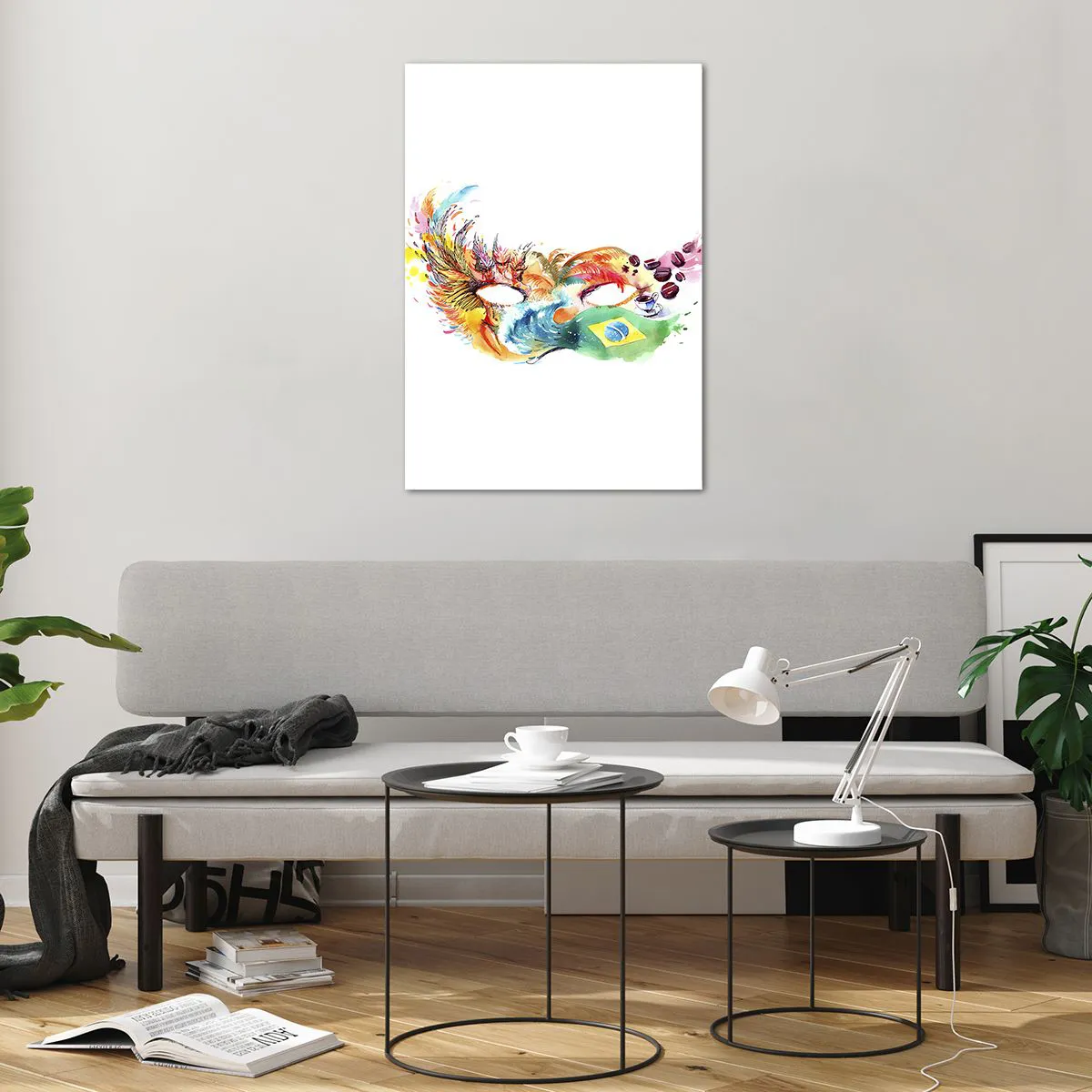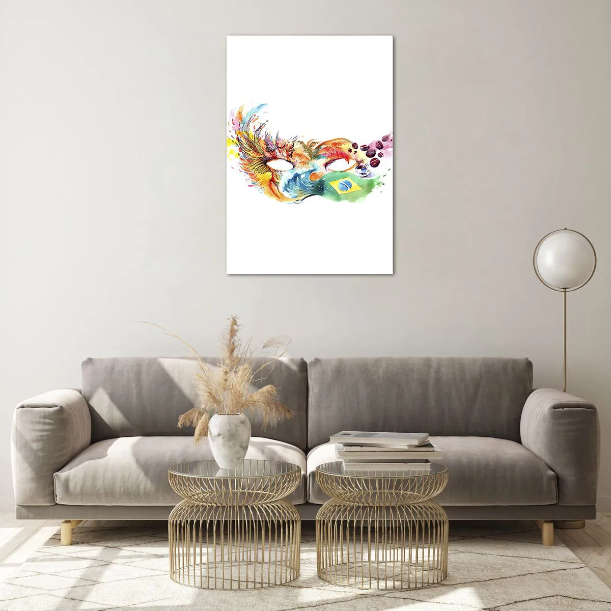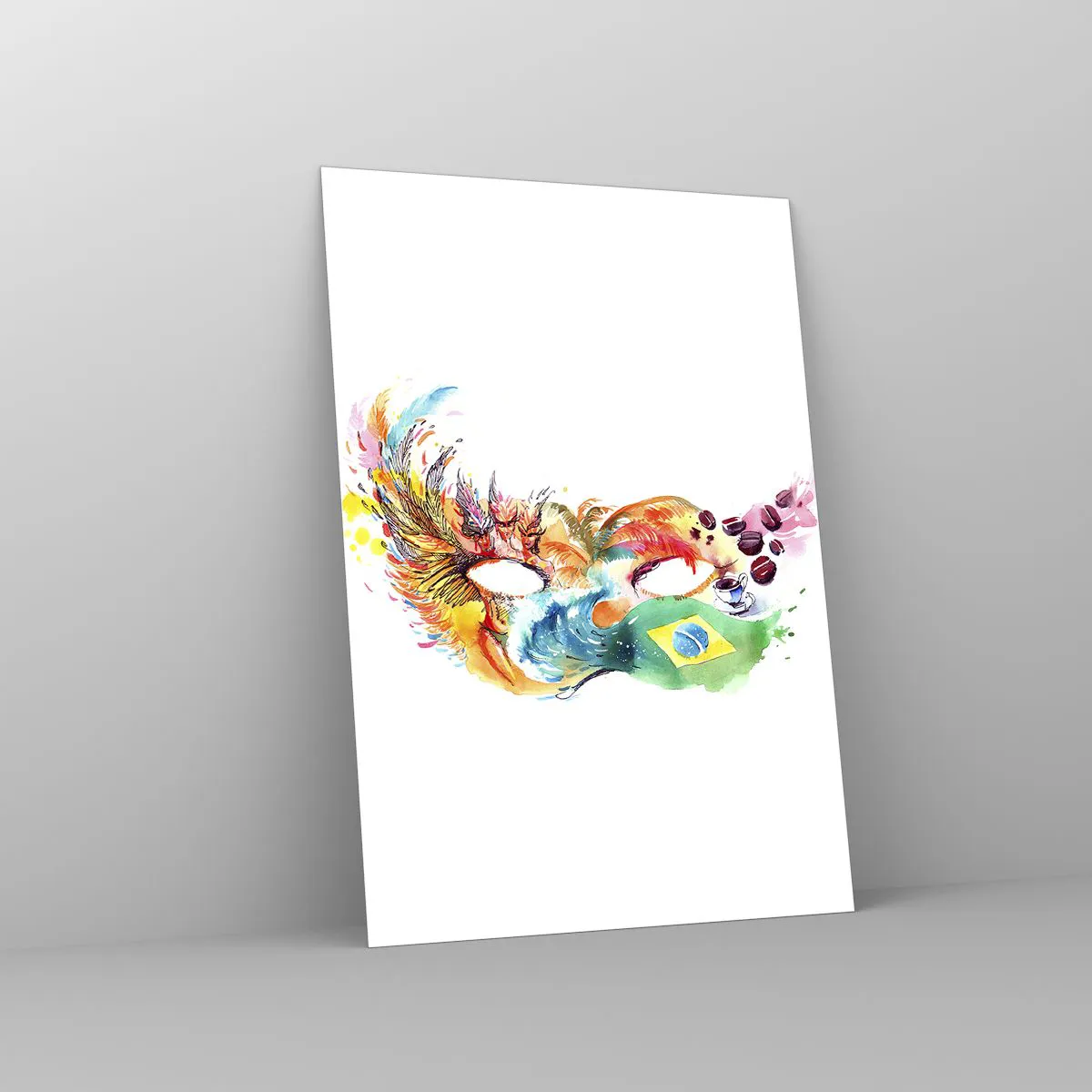Glasbild - Bild auf glas - Bunte Aquarellmaske, inspiriert von Brasilien - 70x100cm - Brasilien begrüßt Samba - Moderne Wanddekoration für Wohnzimmer und Schlafzimmer ARTTOR