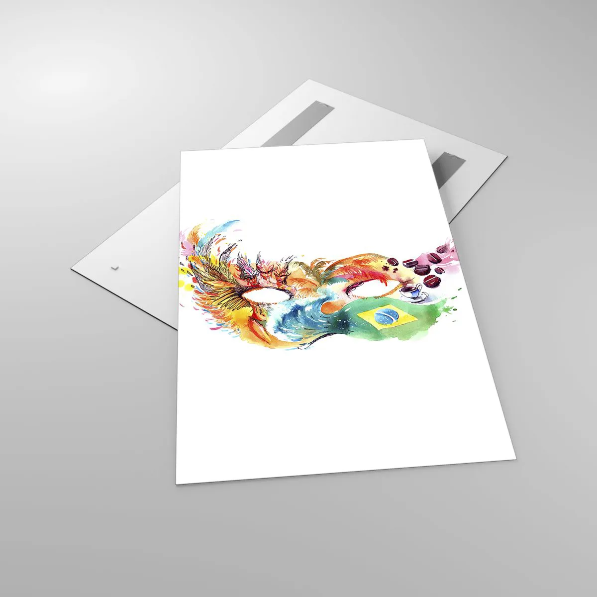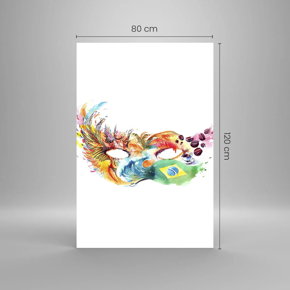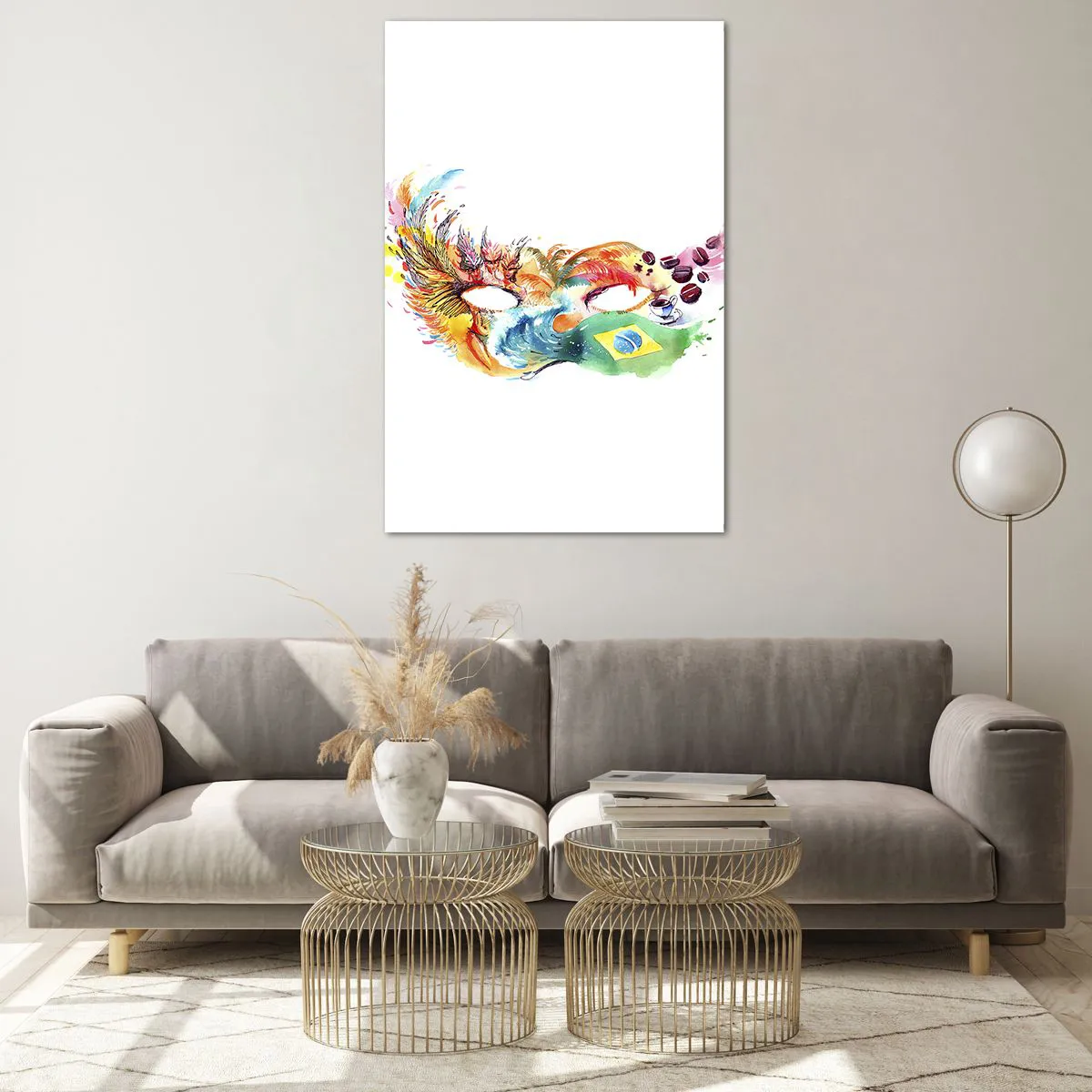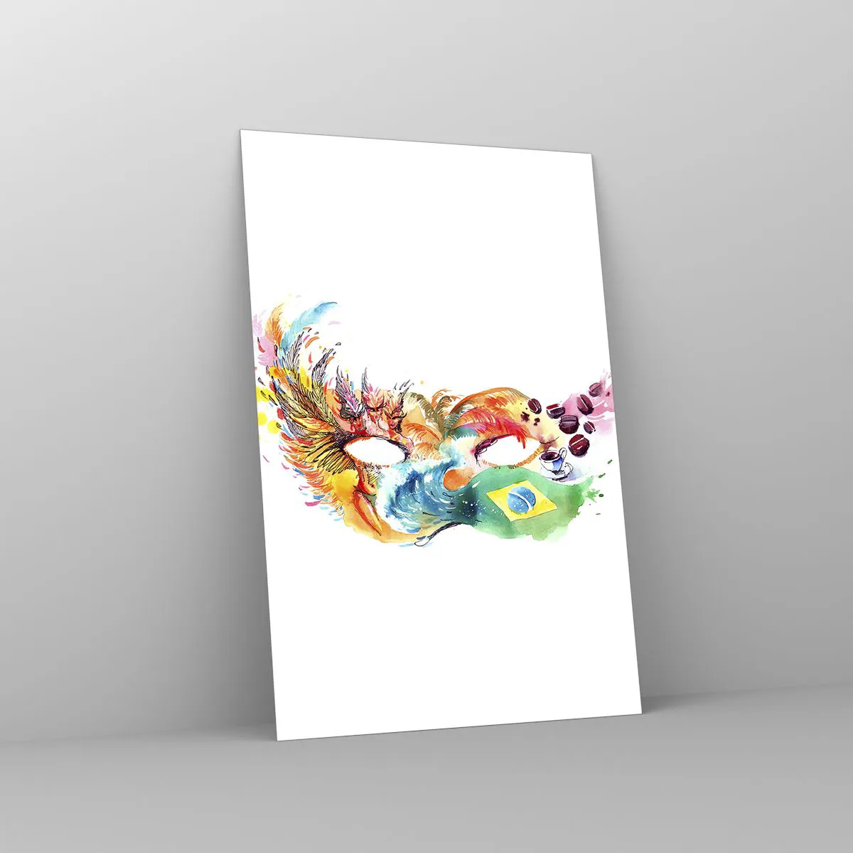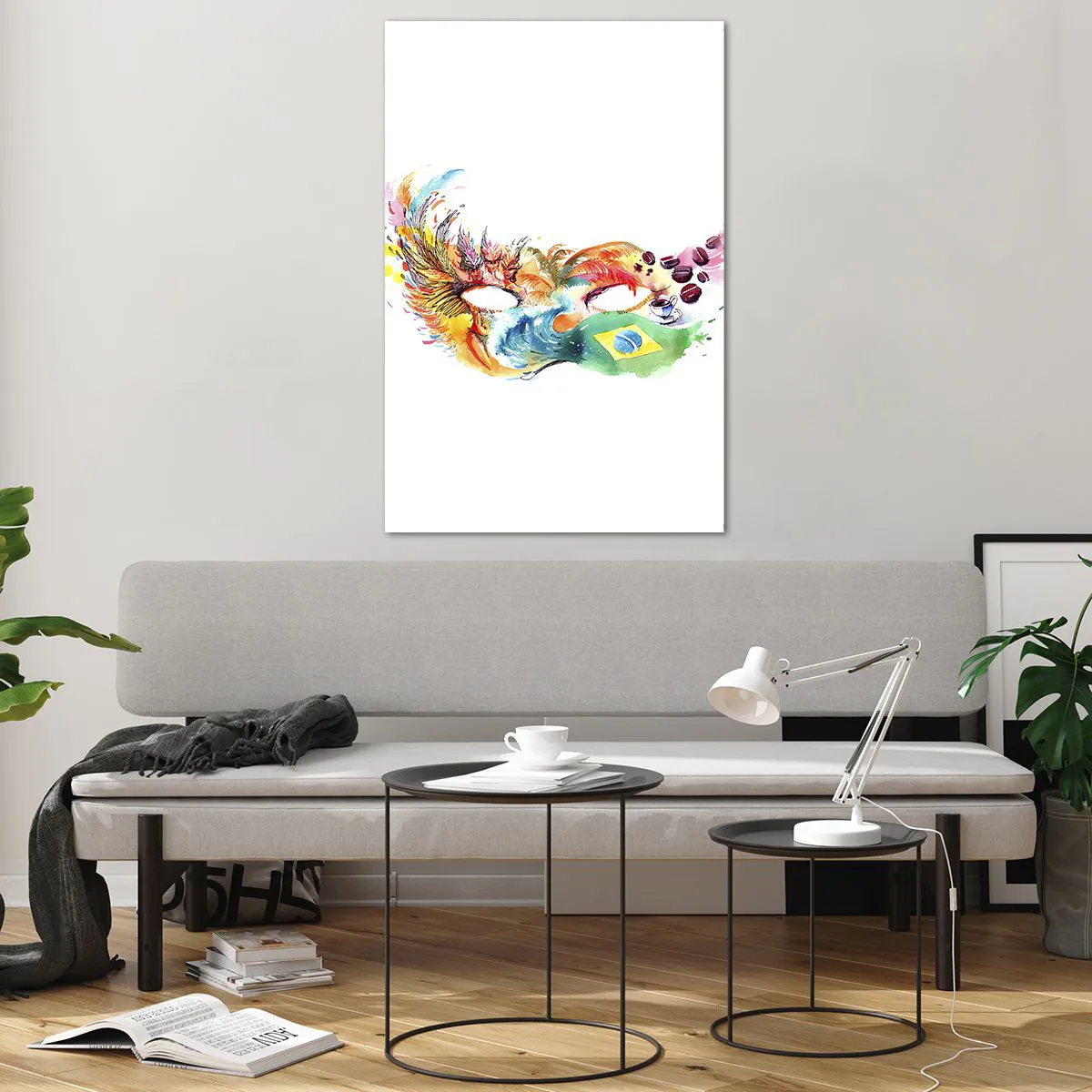 Glasbild - Bild auf glas - Bunte Aquarellmaske, inspiriert von Brasilien - 80x120cm - Brasilien begrüßt Samba - Moderne Wanddekoration für Wohnzimmer und Schlafzimmer ARTTOR