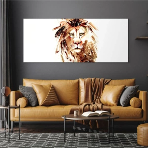 Glasbild - Bild auf glas - Aquarellporträt eines Löwen mit intensiven Details - 80x120cm - Stärke und Würde - Moderne Wanddekoration für Wohnzimmer und Schlafzimmer ARTTOR
