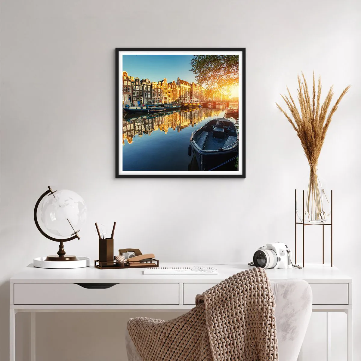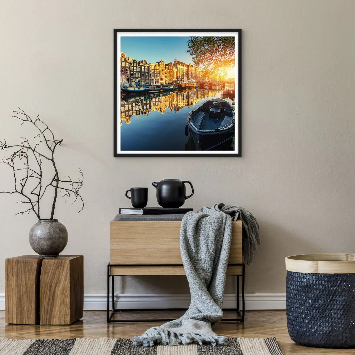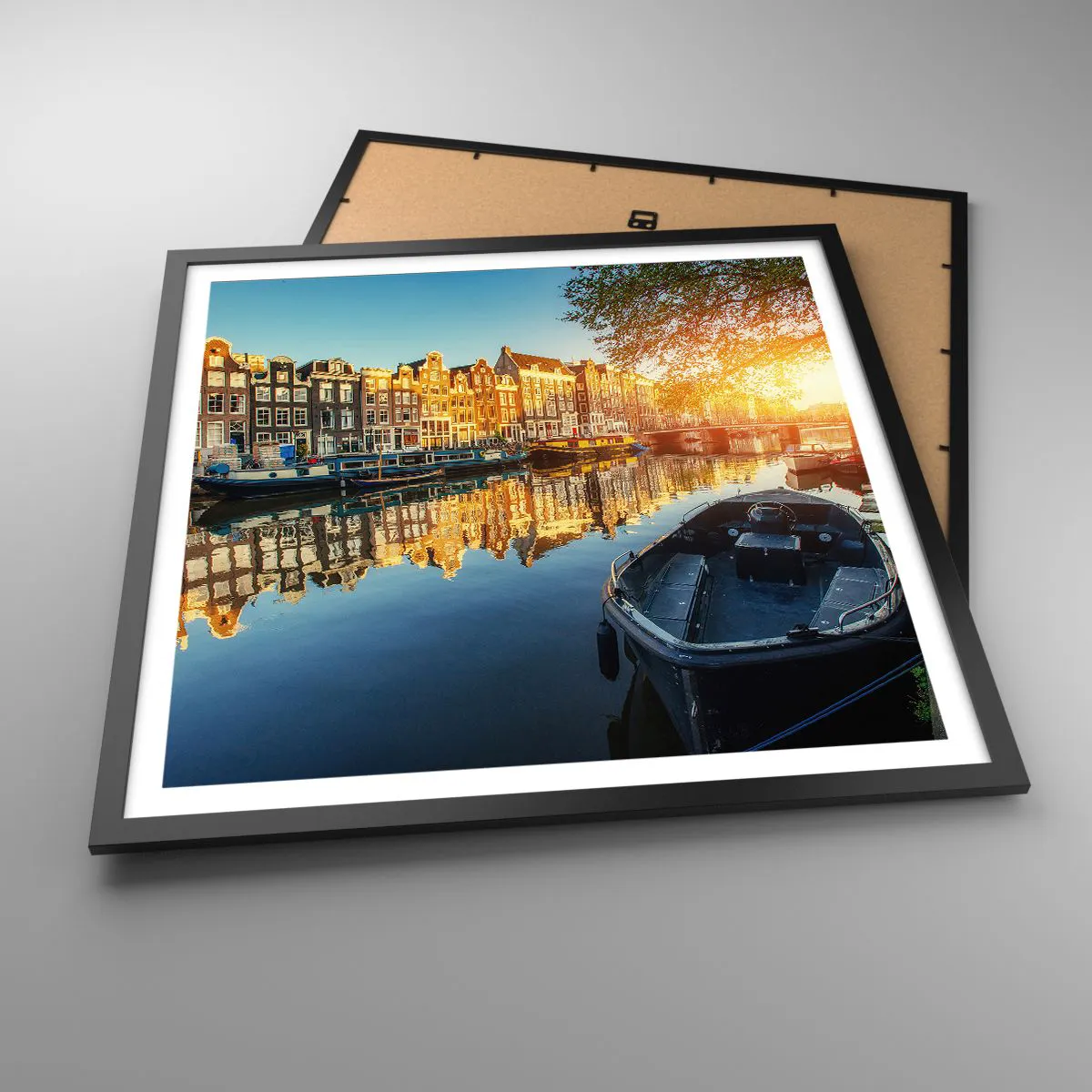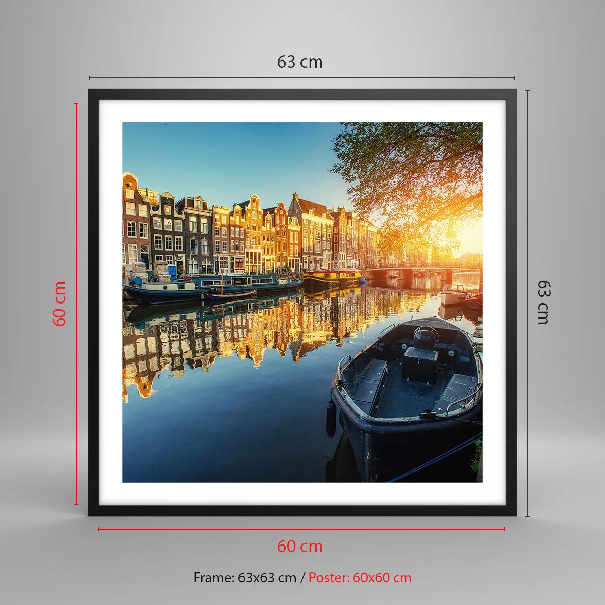 Poster in einem schwarzem Rahmen - Morgen in Amsterdam - 60x60 cm