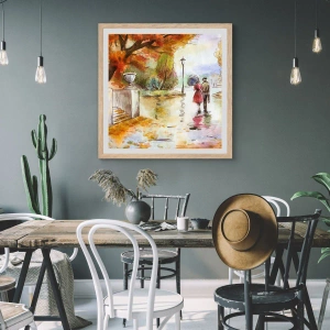 Poster in einem Rahmen aus heller Eiche - Romantischer Herbst im Park - 40x40 cm