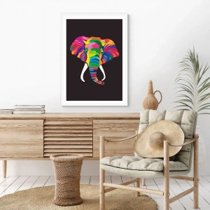 Poster in einem weißen Rahmen - Der Elefant, der es liebte, im Regenbogen zu baden - 70x50 cm