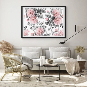 Poster in einem schwarzem Rahmen - Verliere dich in den Blüten der Rosen - 50x40 cm