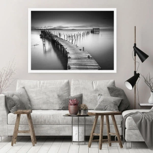 Poster - Ein Holzsteg an einem ruhigen See in Grautönen - 100x70cm - Der Frieden eines vergessenen Ufers - Moderne Wanddekoration für Wohnzimmer und Schlafzimmer ARTTOR