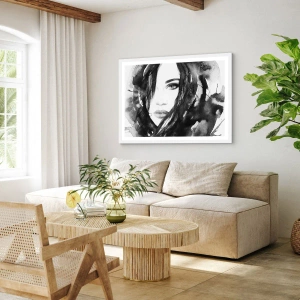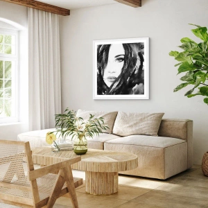 Poster in einem weißen Rahmen - Porträt einer Dame in Schwarzweiß - 40x40 cm