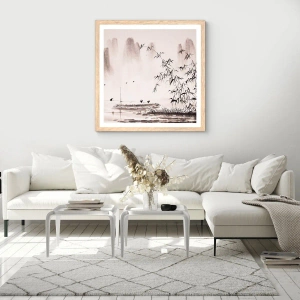 Poster in einem Rahmen aus heller Eiche - Die Stille der Reisfelder - 50x70 cm