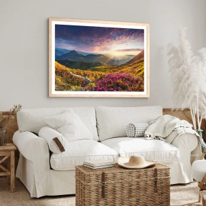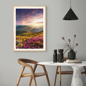 Poster in einem Rahmen aus heller Eiche - Frische am Bergmorgen - 30x40 cm
