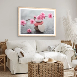 Poster in einem Rahmen aus heller Eiche - Glückseligkeit mit einer Kirschblüte - 50x50 cm