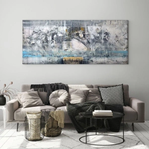Glasbild - Bild auf glas - Eine abstrakte Landschaft, die von Grau und Blau dominiert wird. - 50x70cm - Wie auf Eis, wie nach Dezember - Moderne Wanddekoration für Wohnzimmer und Schlafzimmer ARTTOR