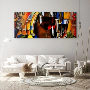 Glasbild - Bild auf glas - Abstraktes Stillleben mit Gläsern und Instrumenten - 140x50cm - Und die Welt nimmt Farben an - Moderne Wanddekoration für Wohnzimmer und Schlafzimmer ARTTOR