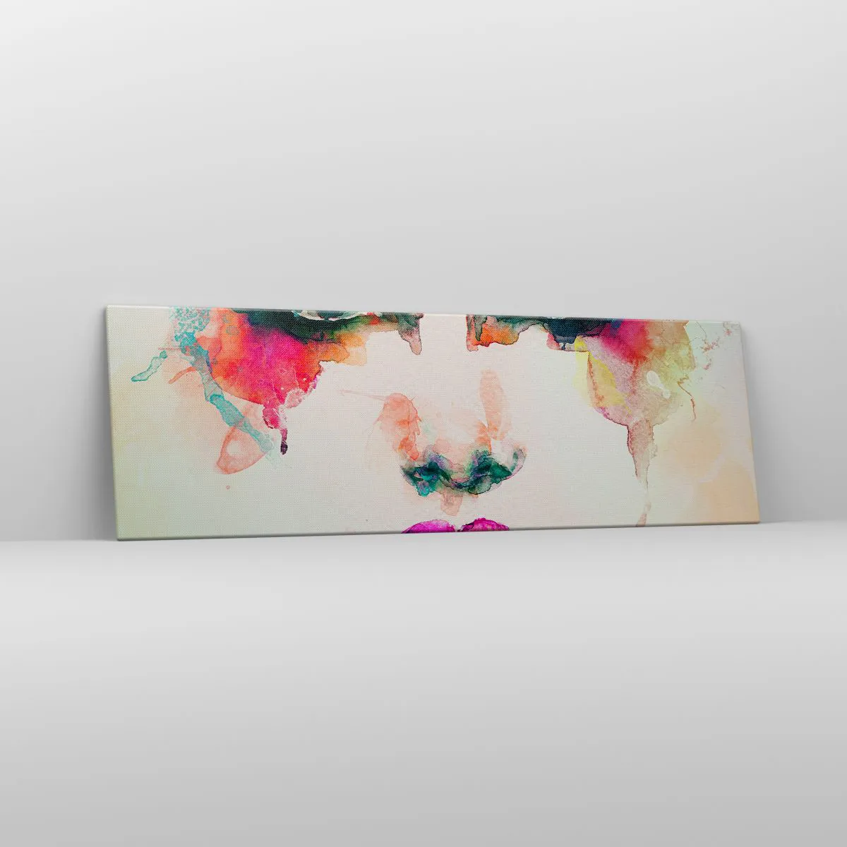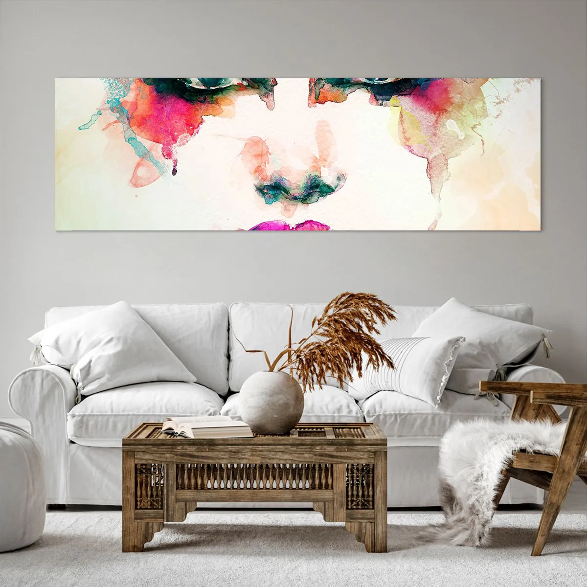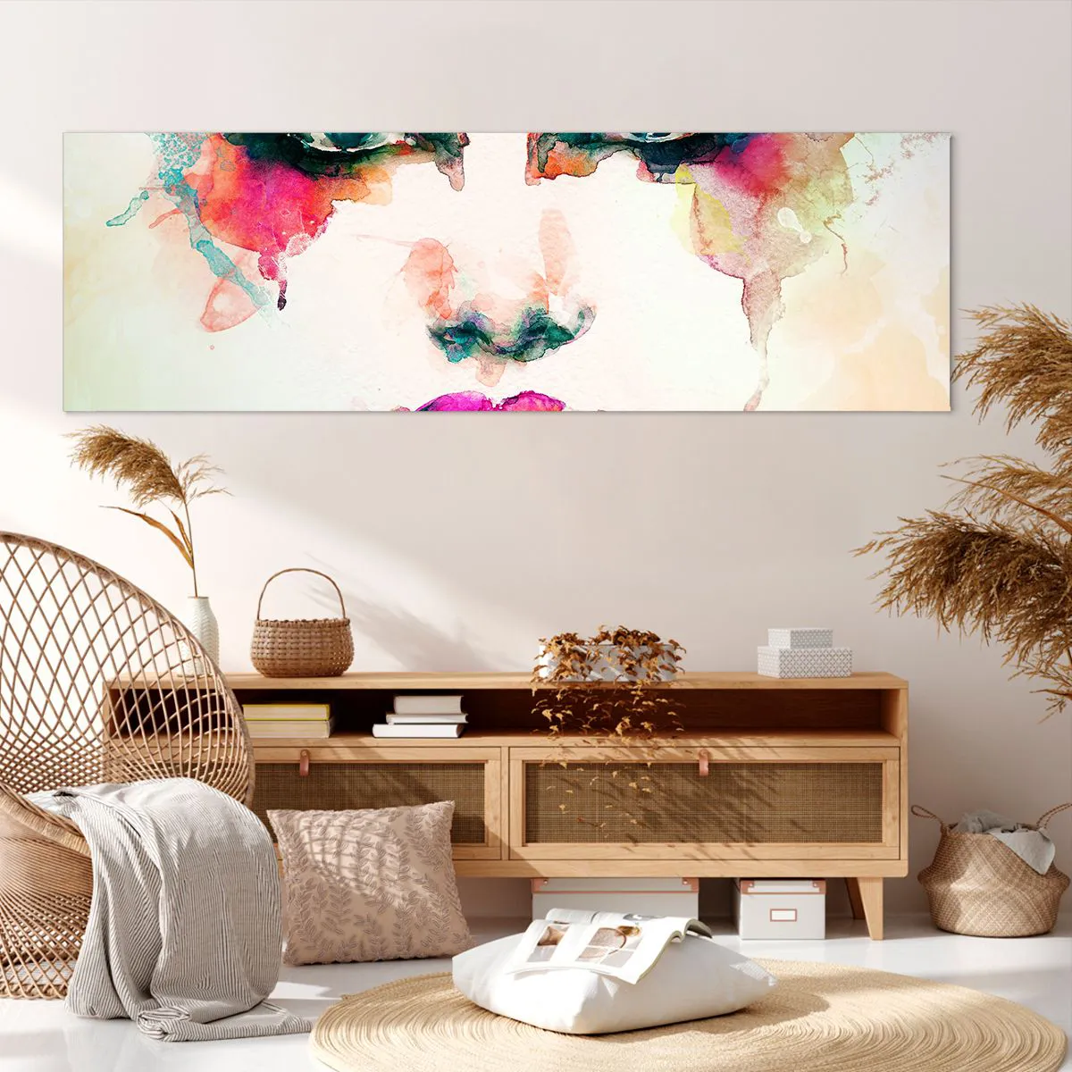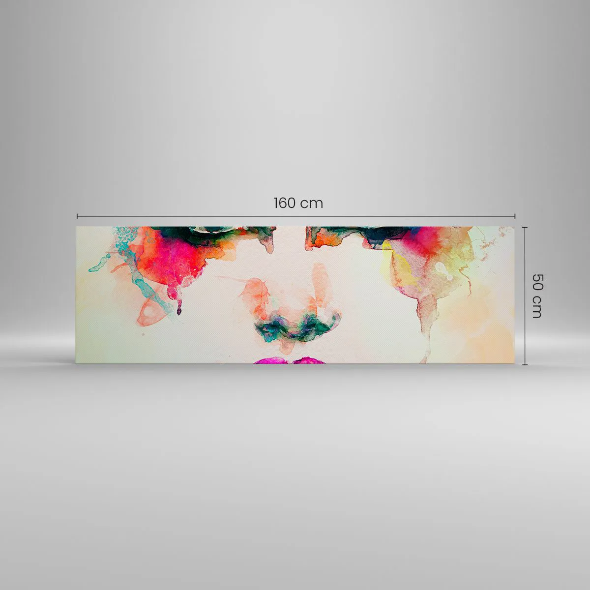 Bild auf Leinwand - Leinwandbild - Abstraktes Frauenporträt in intensiven Farben - 160x50cm - Ein mit einem Regenbogen gemaltes Porträt - Moderne Wanddekoration für Wohnzimmer und Schlafzimmer ARTTOR