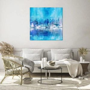 Glasbild - Bild auf glas - Abstraktes Stadtpanorama in Blautönen - 160x50cm - In Blau ertrunken - Moderne Wanddekoration für Wohnzimmer und Schlafzimmer ARTTOR