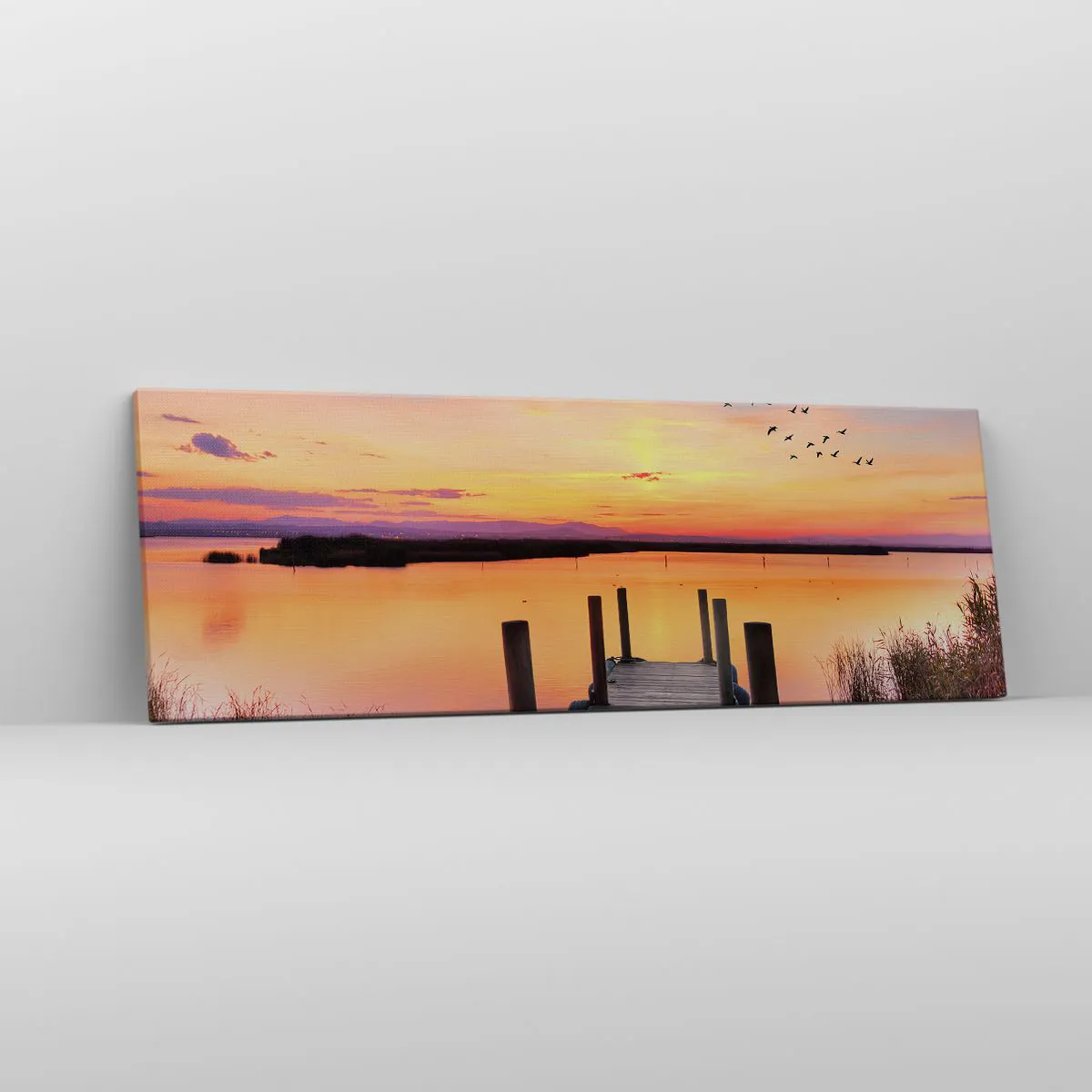 Bild auf Leinwand - Leinwandbild - Violette stille Morgendämmerung - 90x30 cm