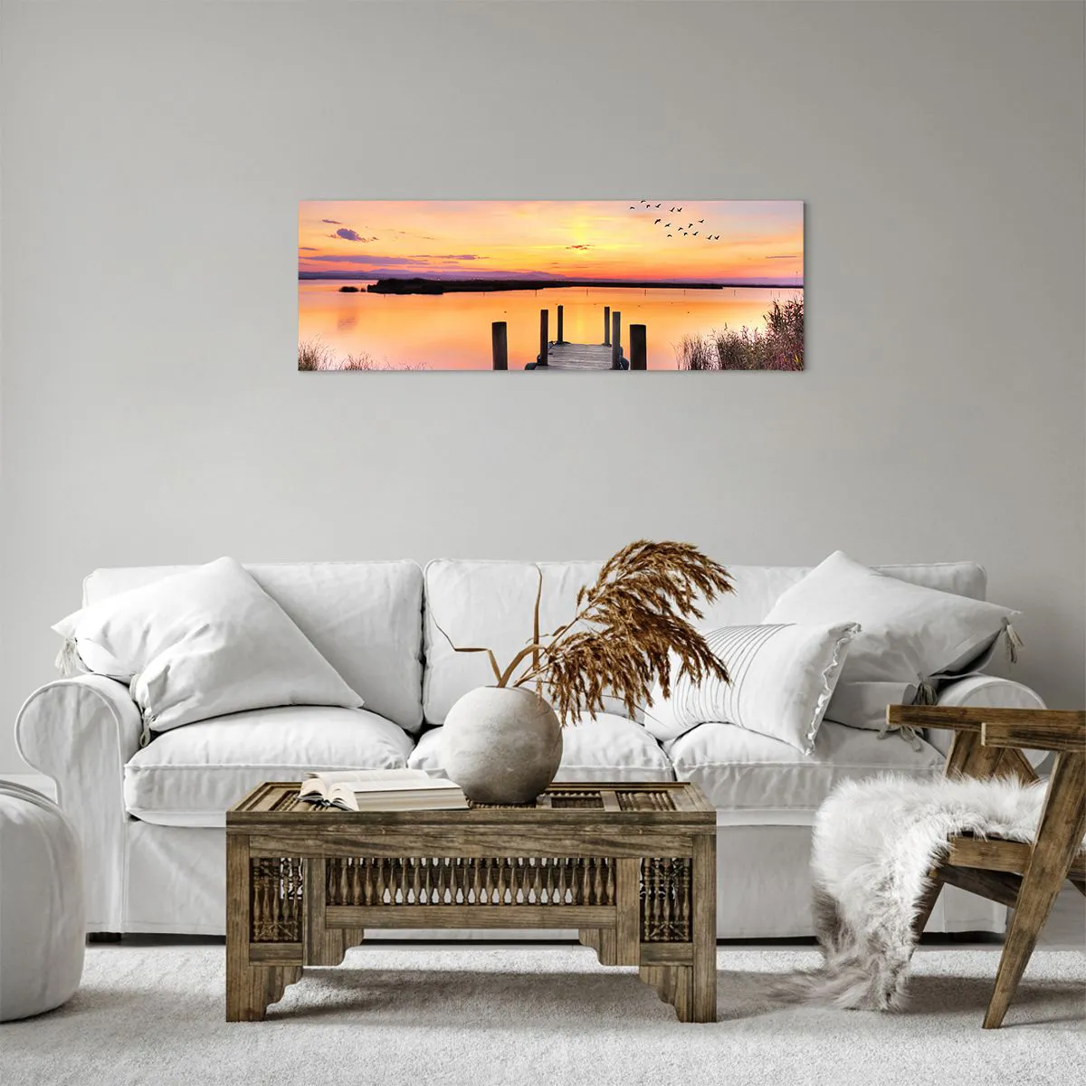 Jedes Bild verfügt über einen am Rahmen befestigten Aufhänger und ein Befestigungsset (Schraube + Dübel), sodass es sofort an die Wand gehängt werden kann