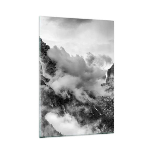 Glasbild - Bild auf glas - Schwarz-Weiß-Ansicht der von Wolken umgebenen Berge - 80x120cm - Schön und grausam - Moderne Wanddekoration für Wohnzimmer und Schlafzimmer ARTTOR