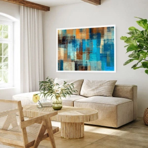 Poster - Abstrakte geometrische Muster in Blautönen - 50x70cm - Durch den blauen Schleier - Moderne Wanddekoration für Wohnzimmer und Schlafzimmer ARTTOR