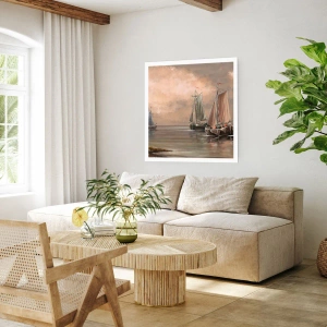 Poster - Segelboote auf ruhiger See in Pastellfarben - 50x70cm - Die Rückkehr der Matrosen - Moderne Wanddekoration für Wohnzimmer und Schlafzimmer ARTTOR