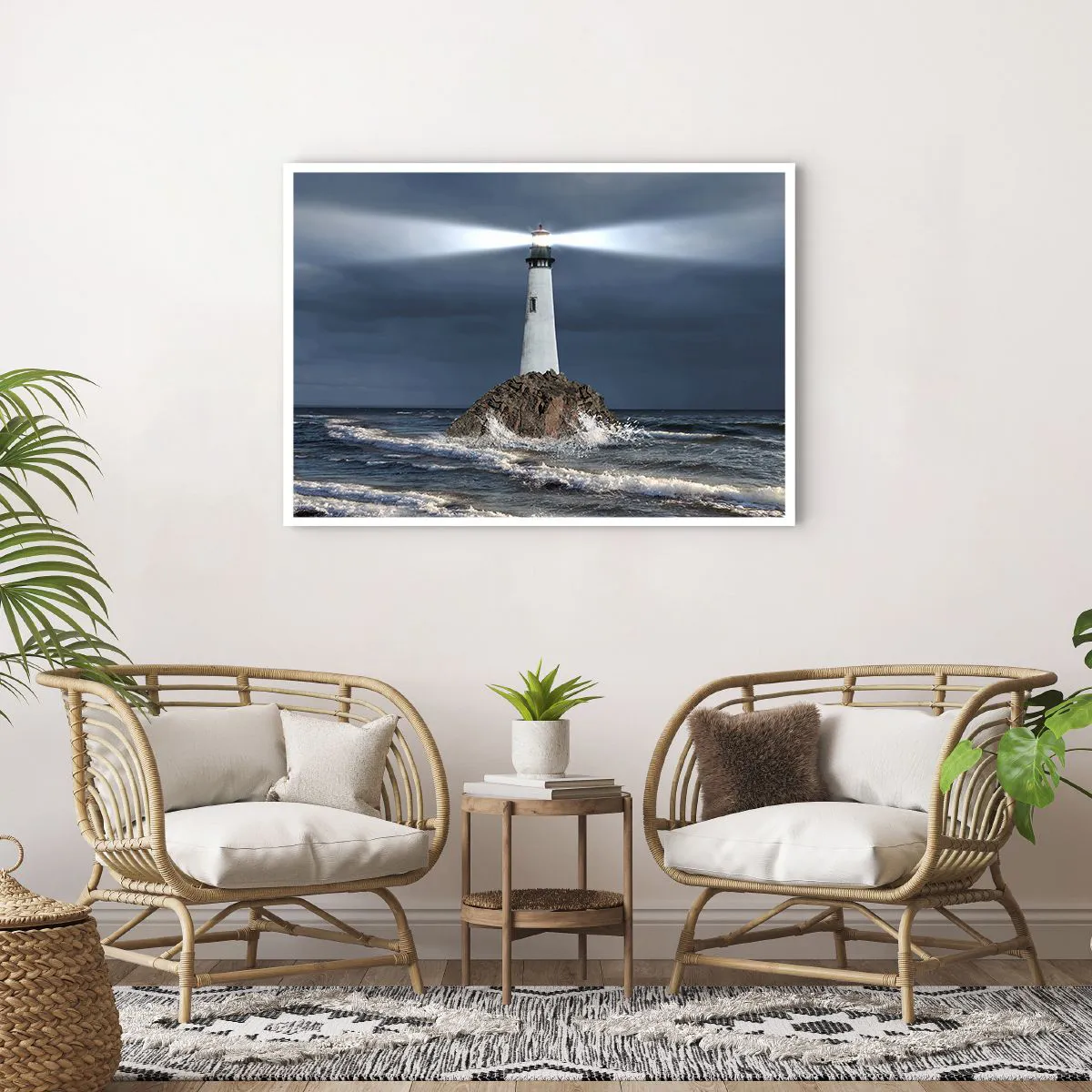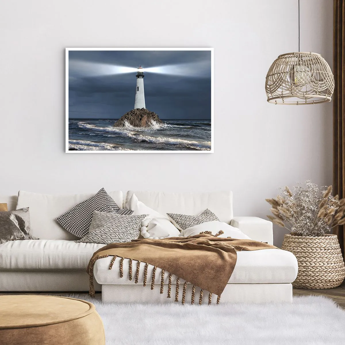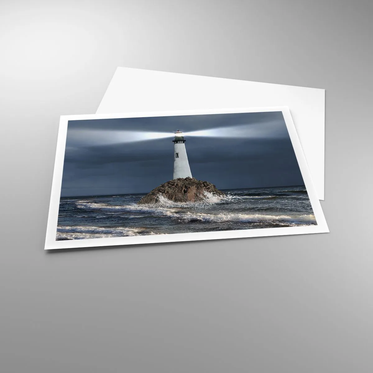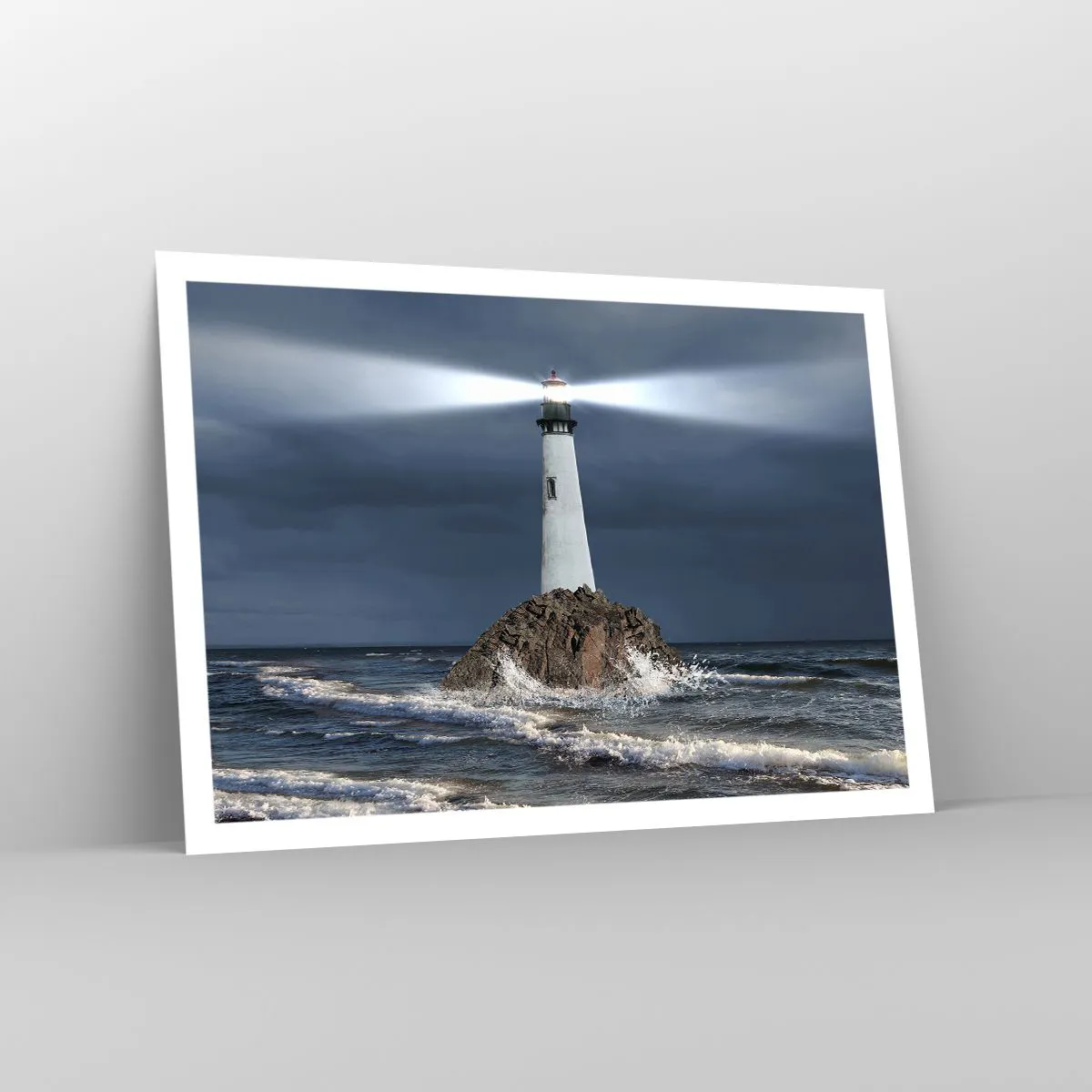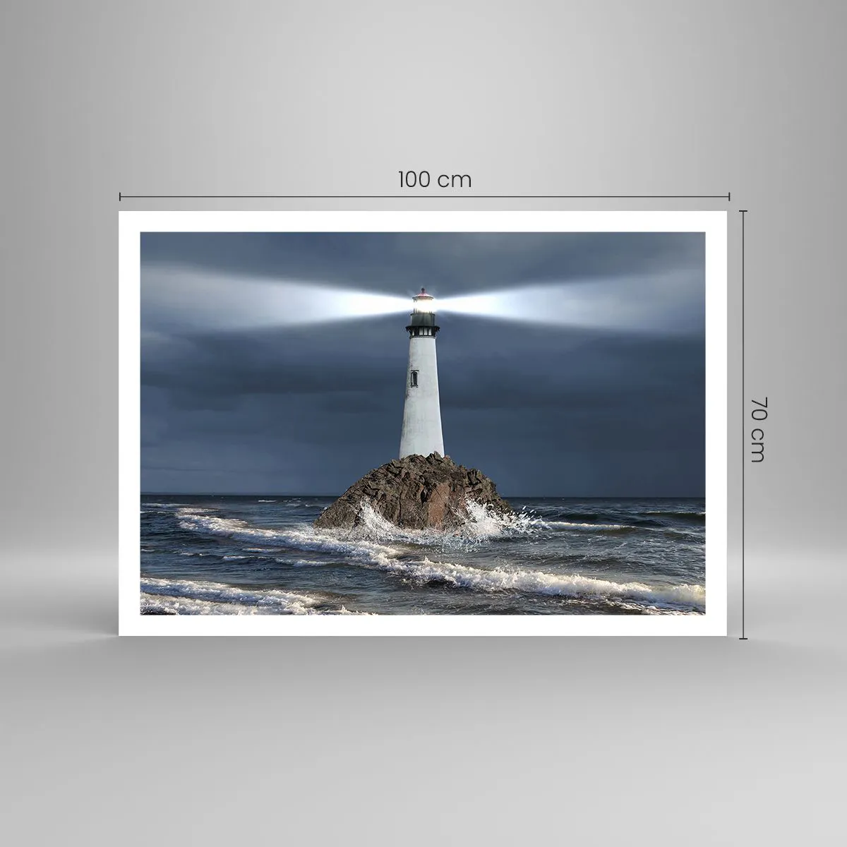 Poster - Ein Leuchtturm auf einem Felsen, umgeben von stürmischer See - 100x70cm - Hier... hier... hier! - Moderne Wanddekoration für Wohnzimmer und Schlafzimmer ARTTOR