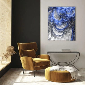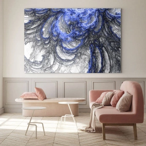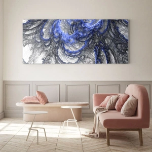 Glasbild - Bild auf glas - Abstrakte Wellen in Blau- und Grautönen - 160x50cm - Die Geburt einer Welle - Moderne Wanddekoration für Wohnzimmer und Schlafzimmer ARTTOR