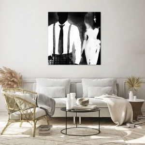 Glasbild - Bild auf glas - Charaktere im Noir-Stil, schwarz-weiße Eleganz und Mysterium - 80x120cm - In Noir-Atmosphäre - Moderne Wanddekoration für Wohnzimmer und Schlafzimmer ARTTOR