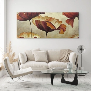 Glasbild - Bild auf glas - Dezente Blumen in Rot- und Goldtönen auf hellem Untergrund - 120x50cm - Weideland - Moderne Wanddekoration für Wohnzimmer und Schlafzimmer ARTTOR
