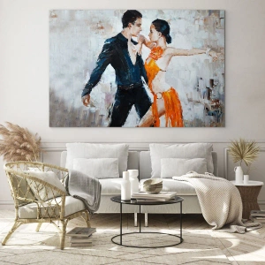 Wandbild – Dirty Dancing – Ein Paar tanzt in dynamischer Pose vor impressionistischem Hintergrund