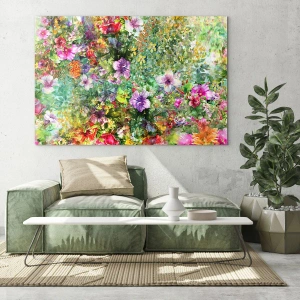Glasbild - Bild auf glas - Bunte Blumen in einer künstlerischen Komposition - 70x50cm - In Blumen für das Verderben - Moderne Wanddekoration für Wohnzimmer und Schlafzimmer ARTTOR