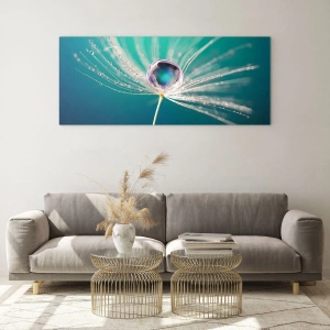 Glasbild - Bild auf glas - Makroaufnahme eines Wassertropfens auf einem zarten Löwenzahnsamen - 160x50cm - Mystischer Moment - Moderne Wanddekoration für Wohnzimmer und Schlafzimmer ARTTOR