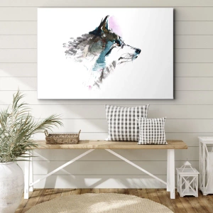 Bild auf Leinwand - Leinwandbild - Aquarellwolf im minimalistischen Stil - 120x80cm - Vom Teufel sprechen - Moderne Wanddekoration für Wohnzimmer und Schlafzimmer ARTTOR