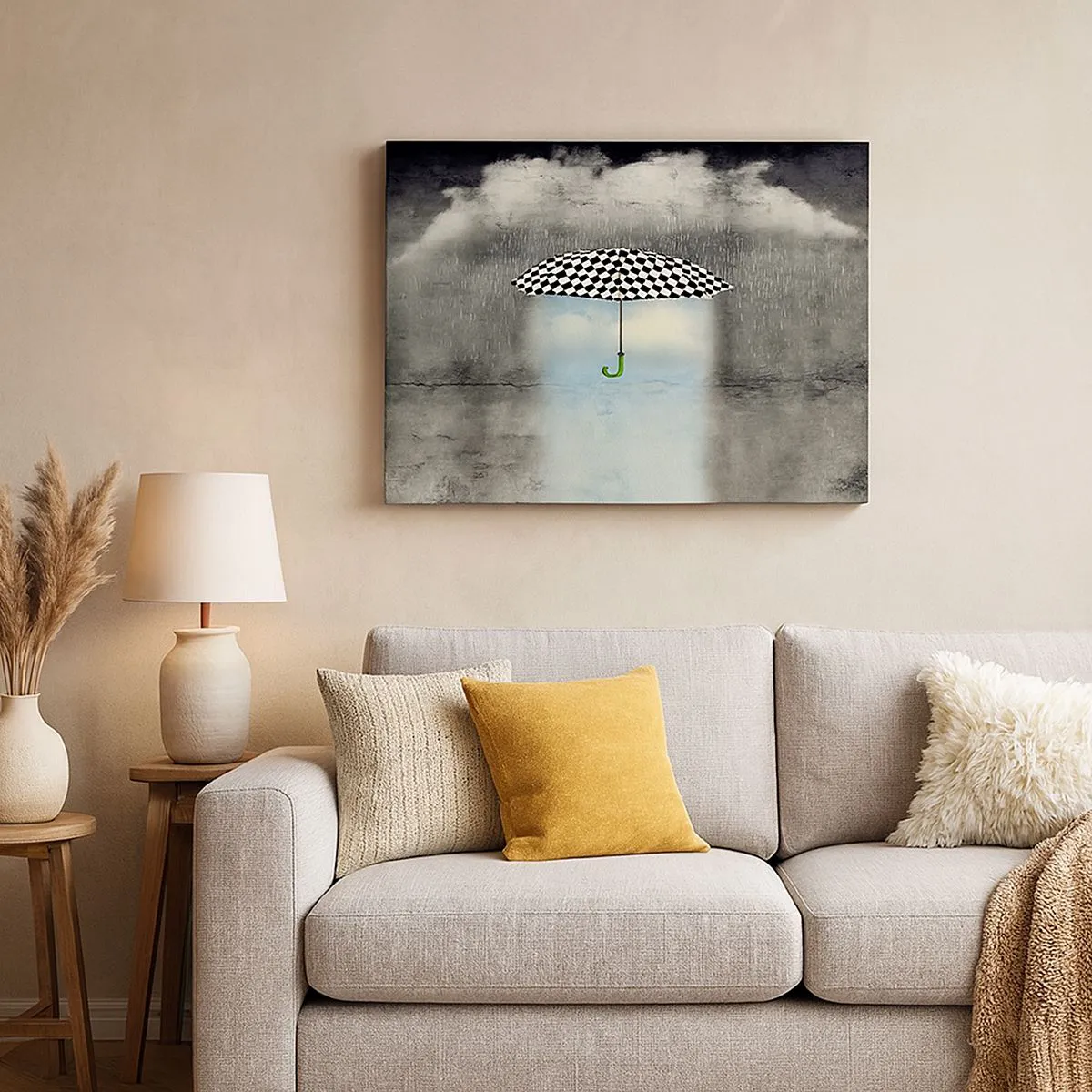 Bild auf Leinwand - Leinwandbild - Ein karierter Regenschirm über einer verregneten Landschaft - 120x80cm - Aber möglich - Moderne Wanddekoration für Wohnzimmer und Schlafzimmer ARTTOR