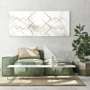 Glasbild - Bild auf glas - Minimalistische goldene Rauten auf Marmorhintergrund - 80x120cm - Ein Blick in die Unendlichkeit - Moderne Wanddekoration für Wohnzimmer und Schlafzimmer ARTTOR