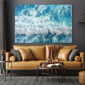 Glasbild - Bild auf glas - Dynamische Meereswellen in Blautönen - 160x50cm - Freudig und springend - Moderne Wanddekoration für Wohnzimmer und Schlafzimmer ARTTOR