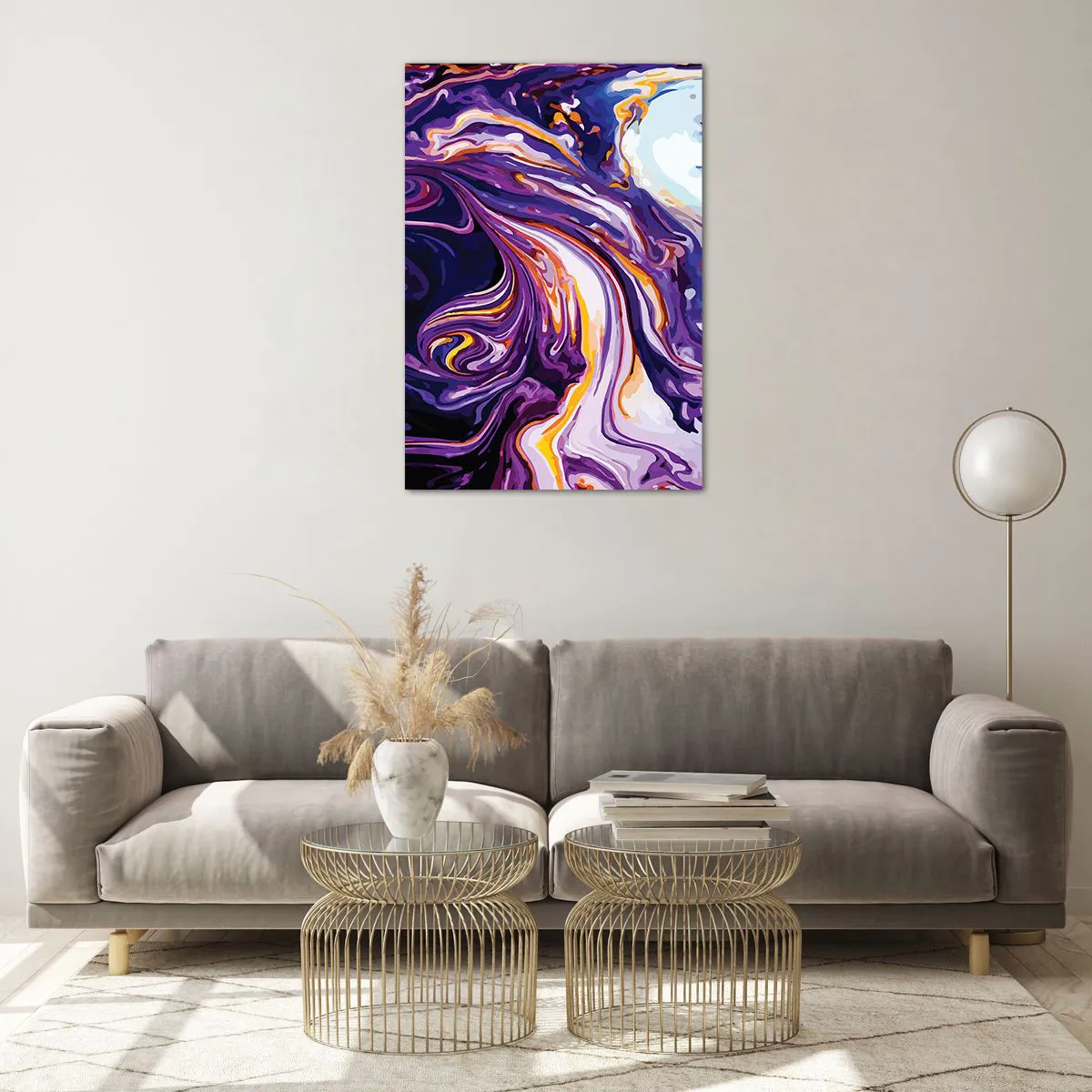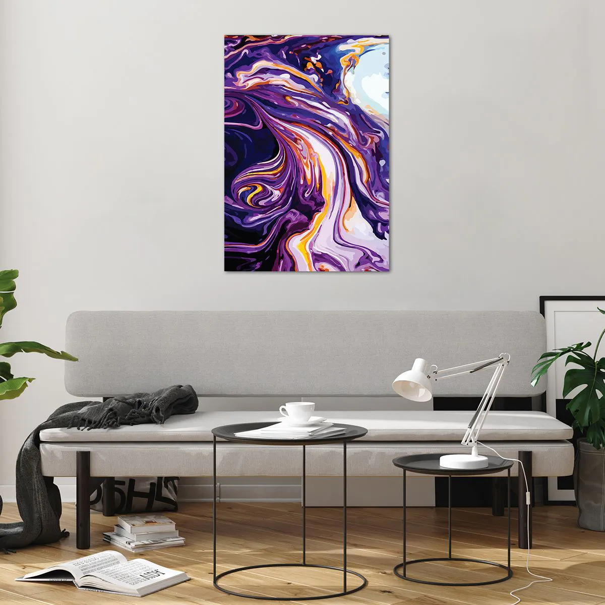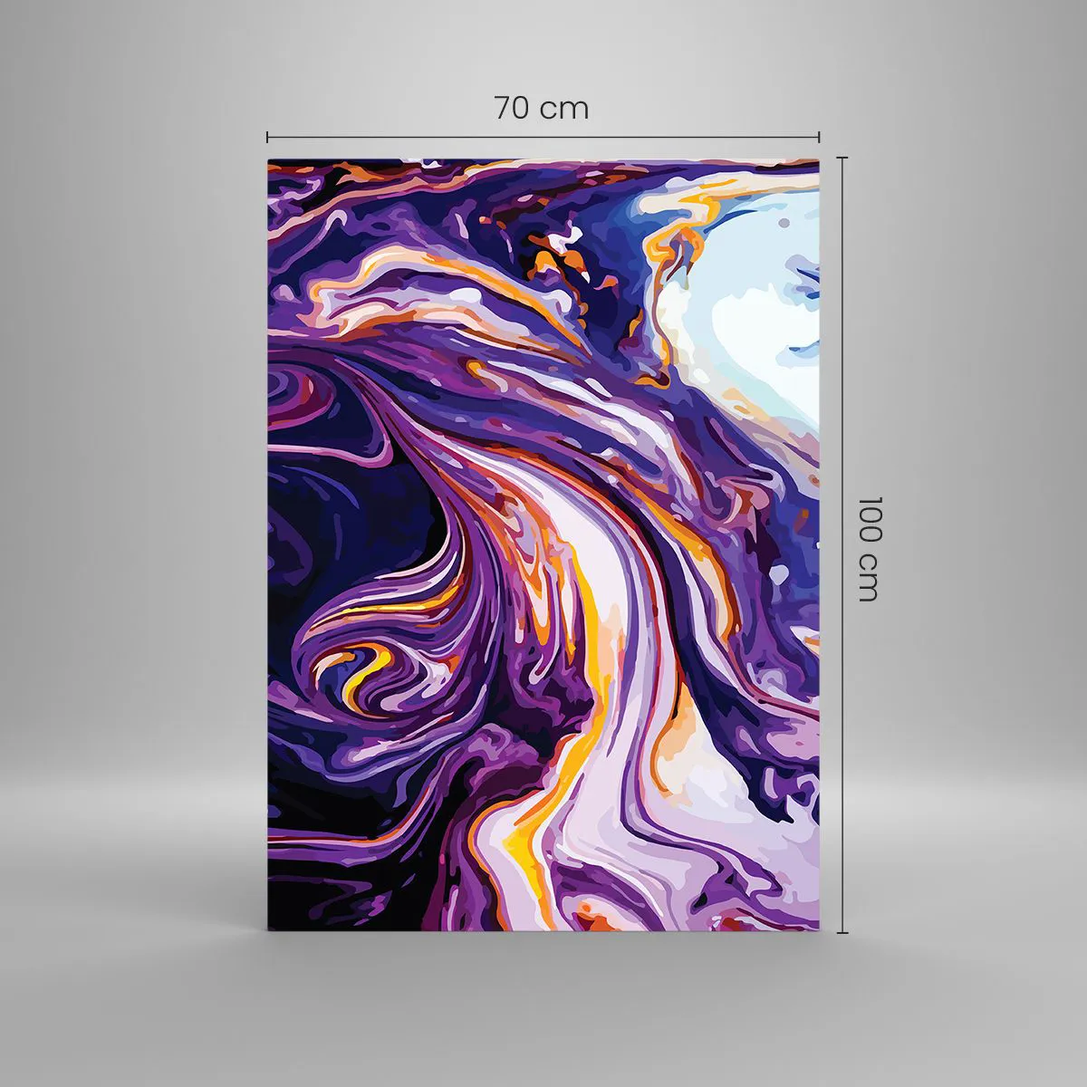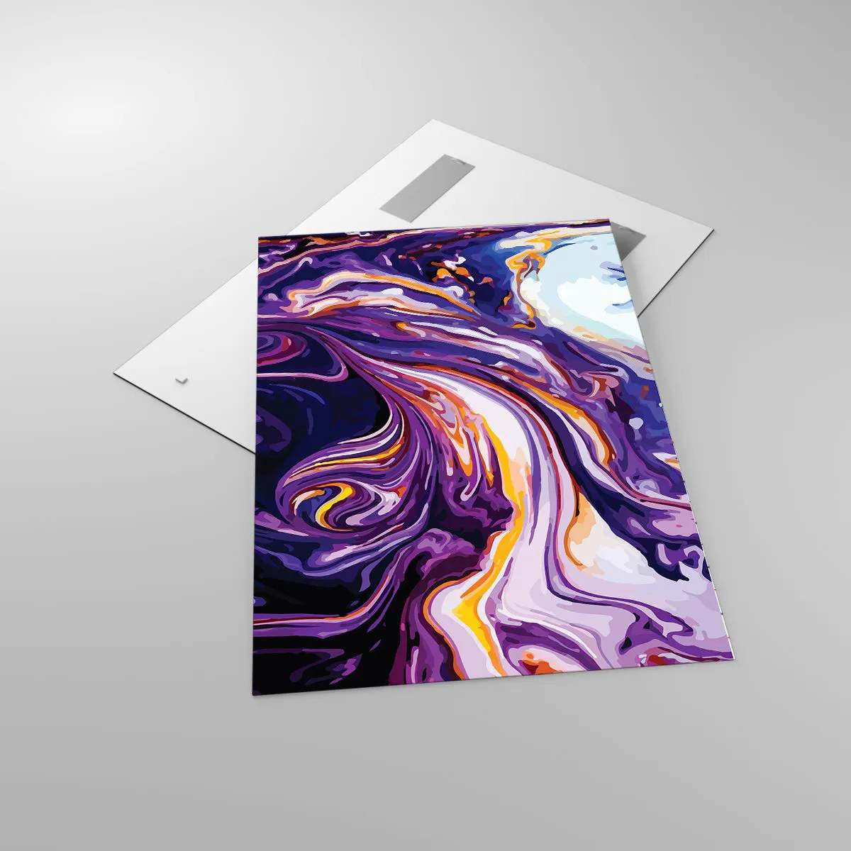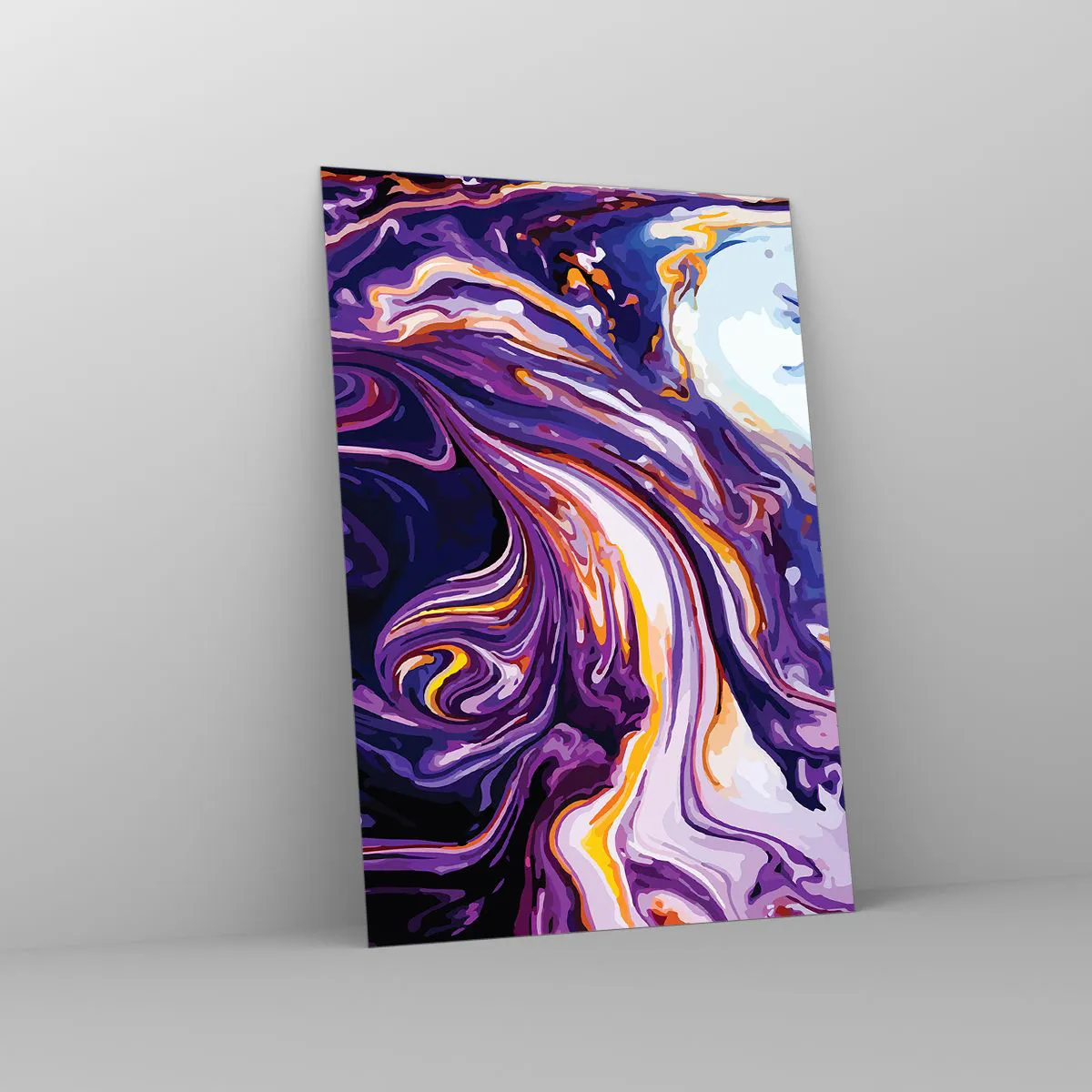 Glasbild - Bild auf glas - Ein dynamisches abstraktes Muster in Lila- und Gelbtönen. - 70x100cm - Die Falte ist lila geworden - Moderne Wanddekoration für Wohnzimmer und Schlafzimmer ARTTOR