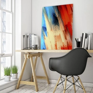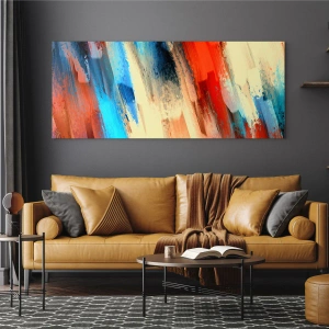 Glasbild - Bild auf glas - Abstrakter Pinselstrich in Blau- und Orangetönen - 120x50cm - Eine Kaskade von Farben - Moderne Wanddekoration für Wohnzimmer und Schlafzimmer ARTTOR