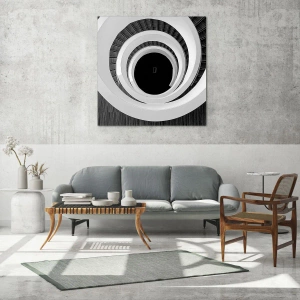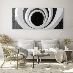Glasbild - Bild auf glas - Schwarz-weiße Wendeltreppe im modernen Stil - 120x50cm - Zum Kern der Sache - Moderne Wanddekoration für Wohnzimmer und Schlafzimmer ARTTOR