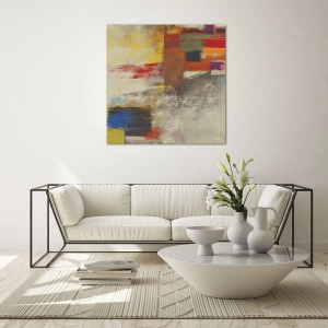Glasbild - Bild auf glas - Bunte Abstraktion mit geometrischen Formen - 50x70cm - Geometrie der Farben - Moderne Wanddekoration für Wohnzimmer und Schlafzimmer ARTTOR