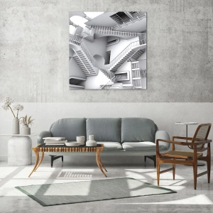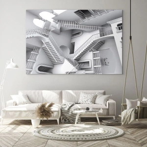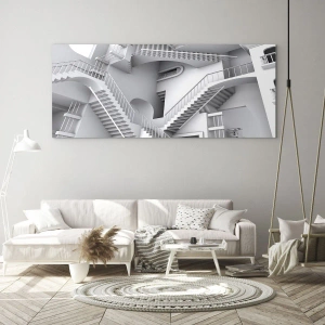 Glasbild - Bild auf glas - Eine abstrakte Komposition aus Treppen in einer surrealistischen Raumanordnung - 120x50cm - Die Paradoxien des Weltraums - Moderne Wanddekoration für Wohnzimmer und Schlafzimmer ARTTOR