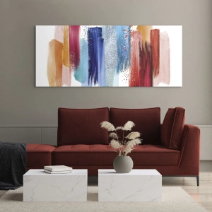 Glasbild - Bild auf glas - Bunte Pinselstriche auf weißem Hintergrund - 140x50cm - Auf und ab - Moderne Wanddekoration für Wohnzimmer und Schlafzimmer ARTTOR