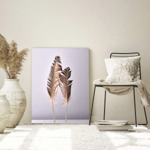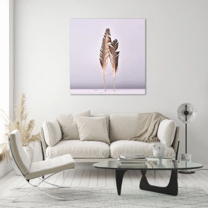 Glasbild - Bild auf glas - Zarte Federn auf hellem Untergrund im minimalistischen Stil - 70x100cm - Gegen das Nichts - Moderne Wanddekoration für Wohnzimmer und Schlafzimmer ARTTOR