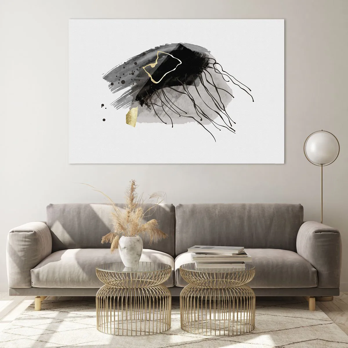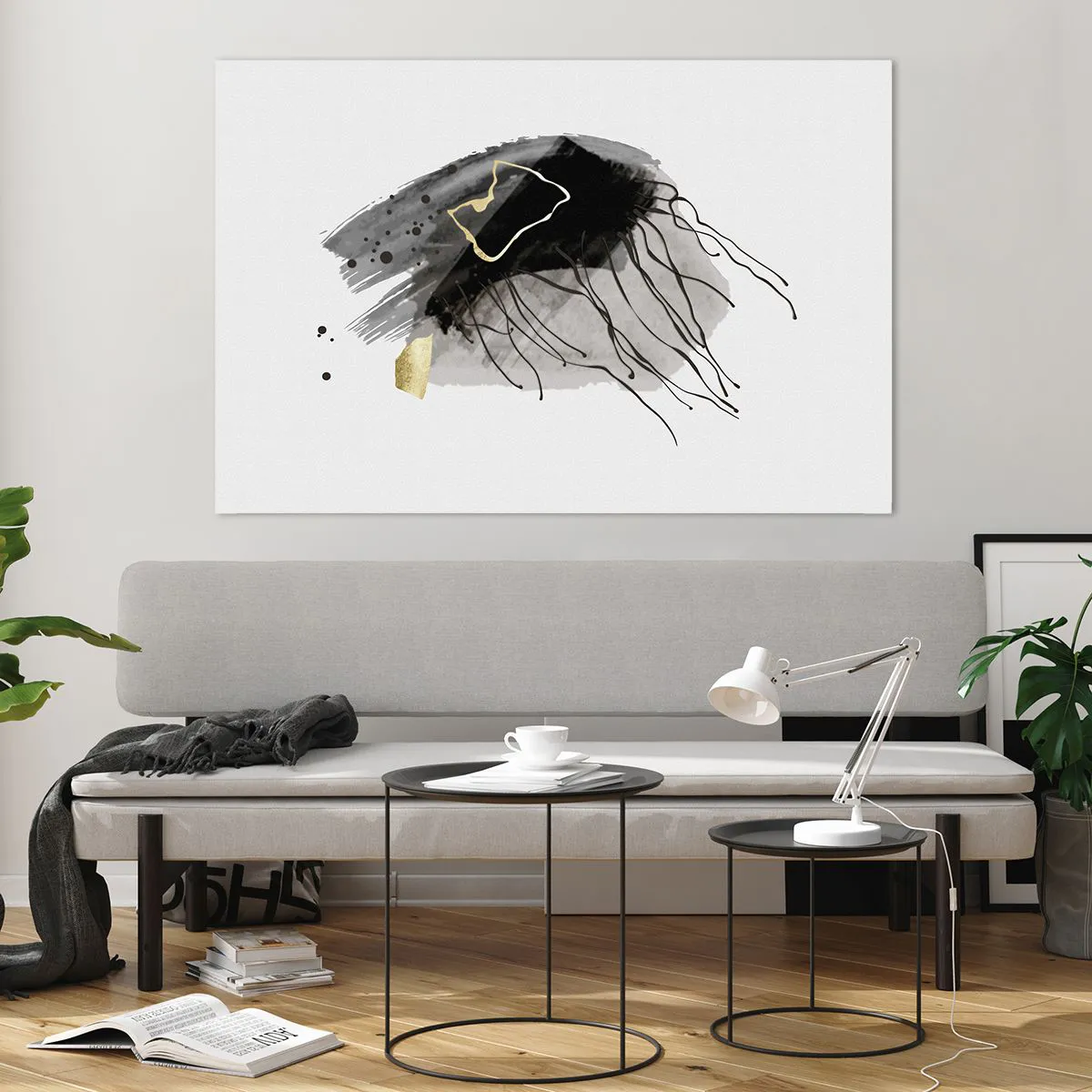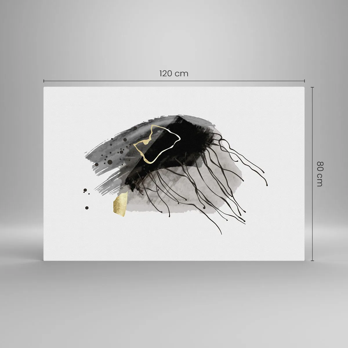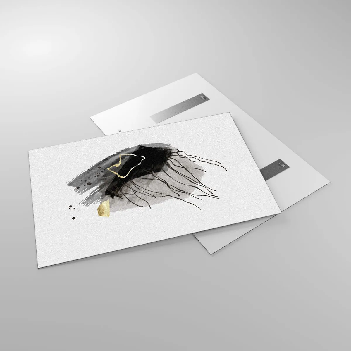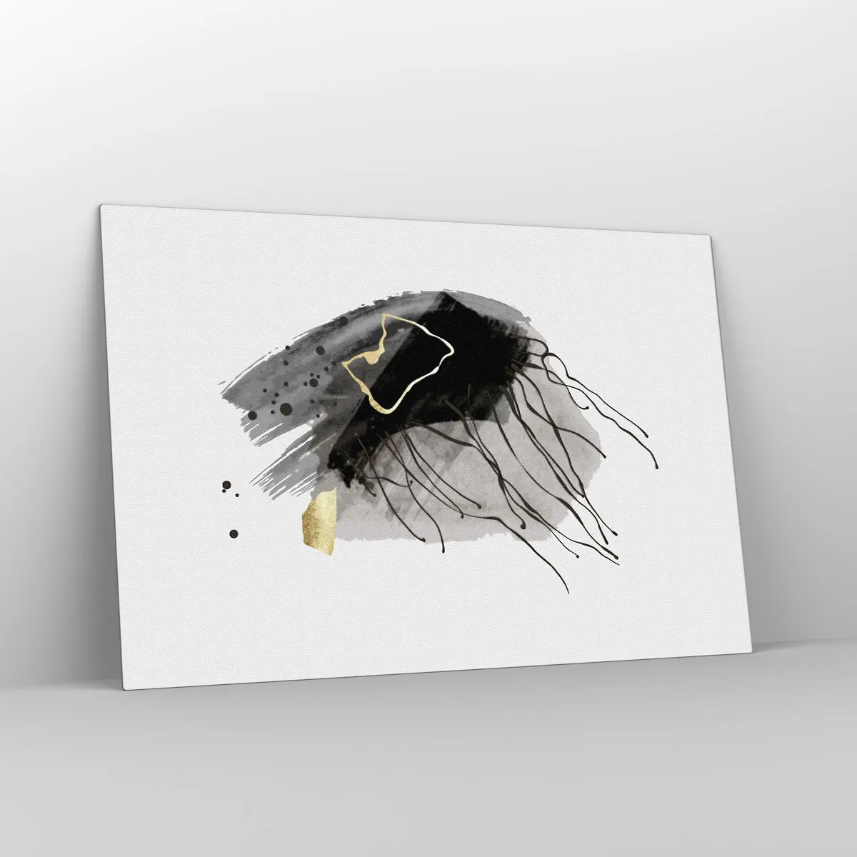 Glasbild - Bild auf glas - Abstrakte Komposition aus Schwarz und Gold auf weißem Hintergrund - 120x80cm - In Schwarz und Gold - Moderne Wanddekoration für Wohnzimmer und Schlafzimmer ARTTOR