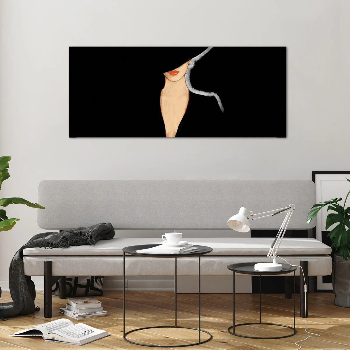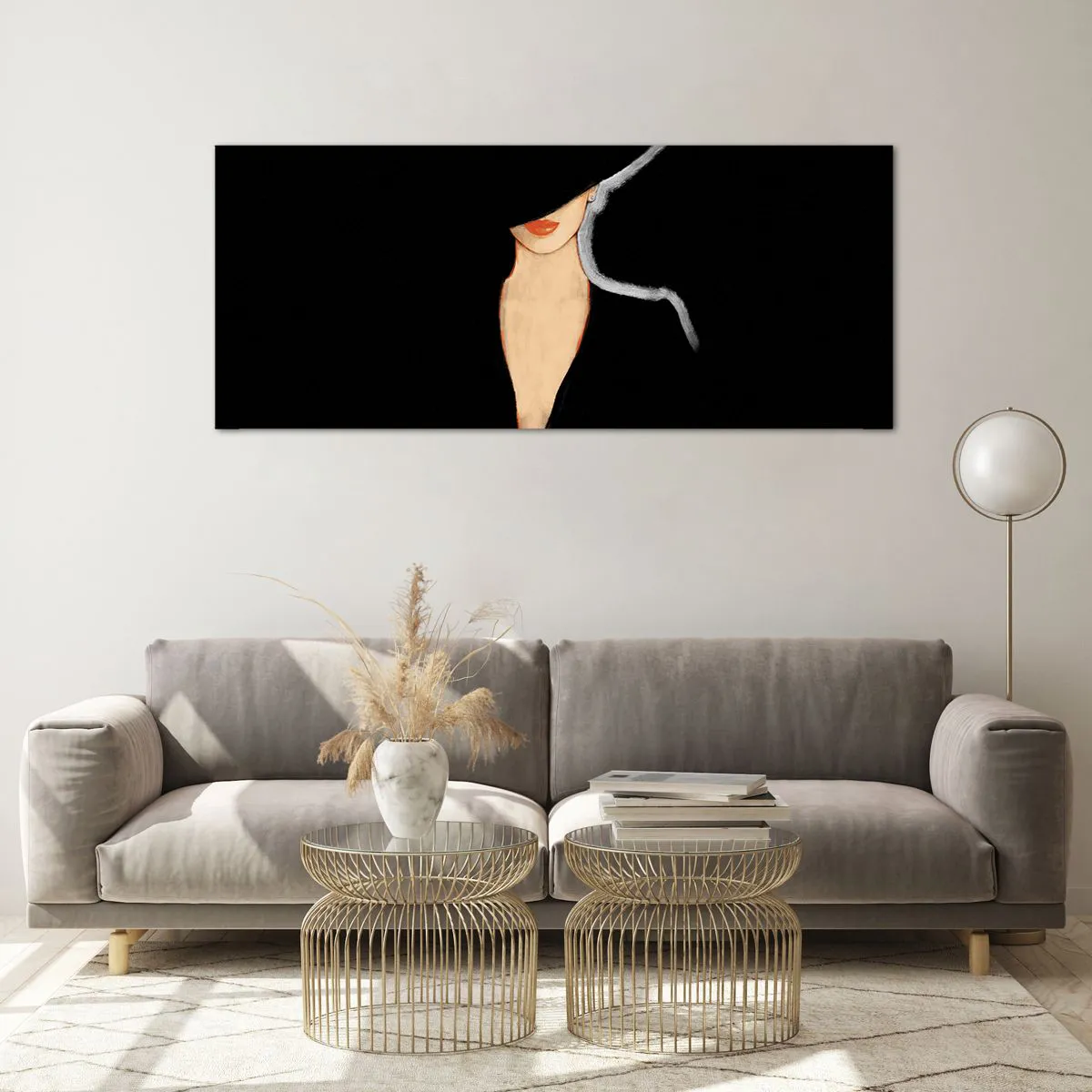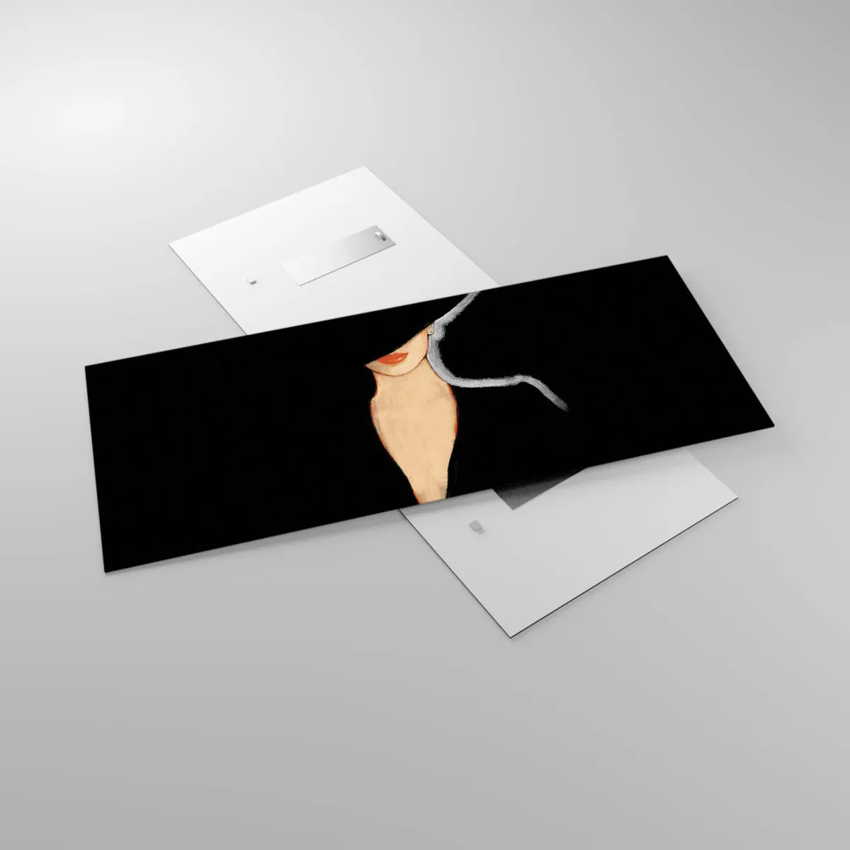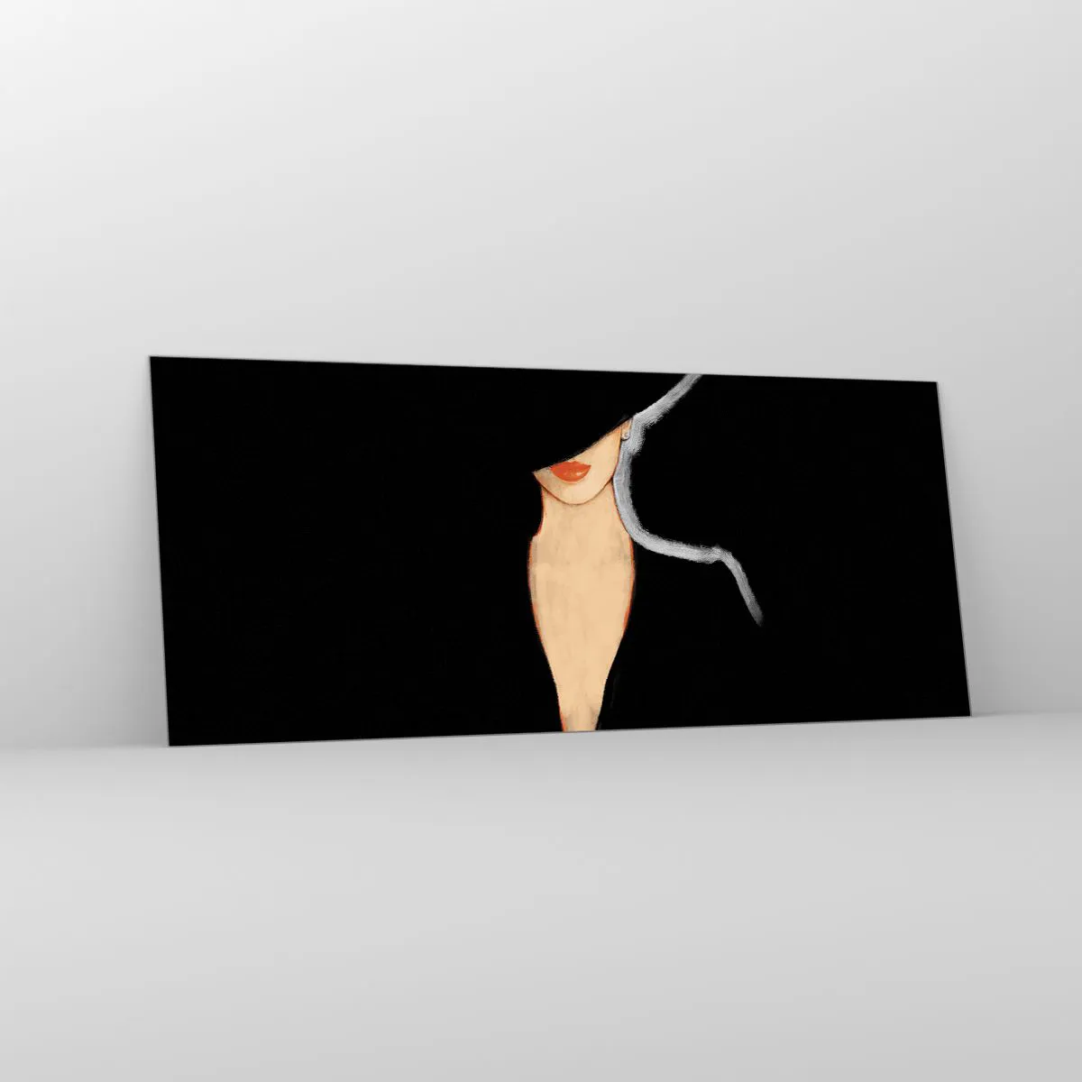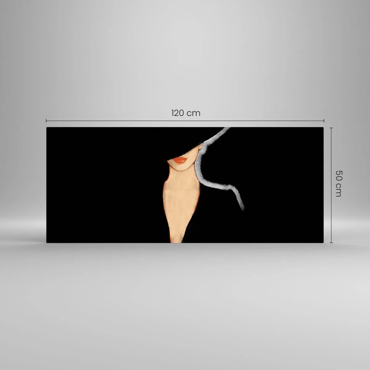 Glasbild - Bild auf glas - Silhouette einer Frau mit Hut auf schwarzem Hintergrund - 120x50cm - Eleganz und Stil - Moderne Wanddekoration für Wohnzimmer und Schlafzimmer ARTTOR