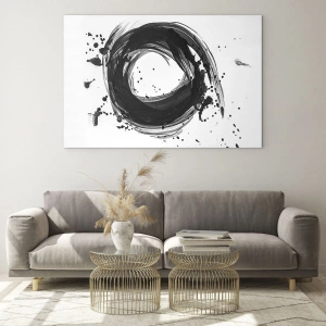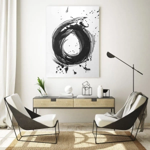 Glasbild - Bild auf glas - Eine minimalistische Komposition in Form eines schwarzen Pinsels auf Weiß - 70x50cm - Der Wirbel der Schöpfung - Moderne Wanddekoration für Wohnzimmer und Schlafzimmer ARTTOR