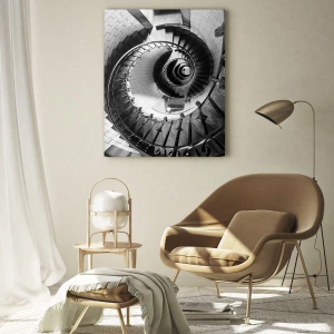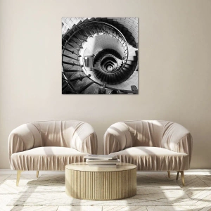 Glasbild - Bild auf glas - Schwarz-Weiß-Foto einer Wendeltreppe in Perspektive - 50x70cm - Höher und höher - Moderne Wanddekoration für Wohnzimmer und Schlafzimmer ARTTOR