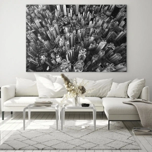 Glasbild - Bild auf glas - Schwarz-weiße Vogelperspektive der Stadt - 120x80cm - Immer höher und höher - Moderne Wanddekoration für Wohnzimmer und Schlafzimmer ARTTOR