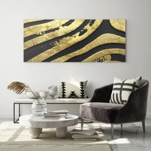 Glasbild - Bild auf glas - Goldene abstrakte Linien auf schwarzem Hintergrund im glamourösen Stil - 50x70cm - Alles fließt - Moderne Wanddekoration für Wohnzimmer und Schlafzimmer ARTTOR