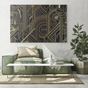 Glasbild - Bild auf glas - Geometrisches Art-Deco-Muster in Gold und Schwarz - 120x80cm - Konzepte, Ideen, Pläne - Moderne Wanddekoration für Wohnzimmer und Schlafzimmer ARTTOR