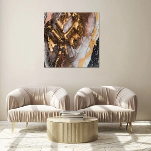 Glasbild - Bild auf glas - Ein abstraktes Gemälde in Gold-, Braun- und Weißtönen mit einer mineralähnlichen Textur. - 70x50cm - Das Element der Erde - Moderne Wanddekoration für Wohnzimmer und Schlafzimmer ARTTOR
