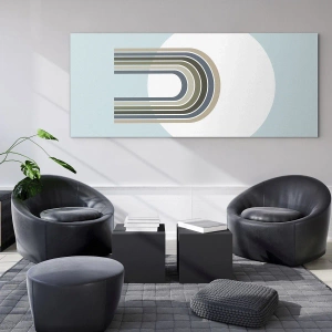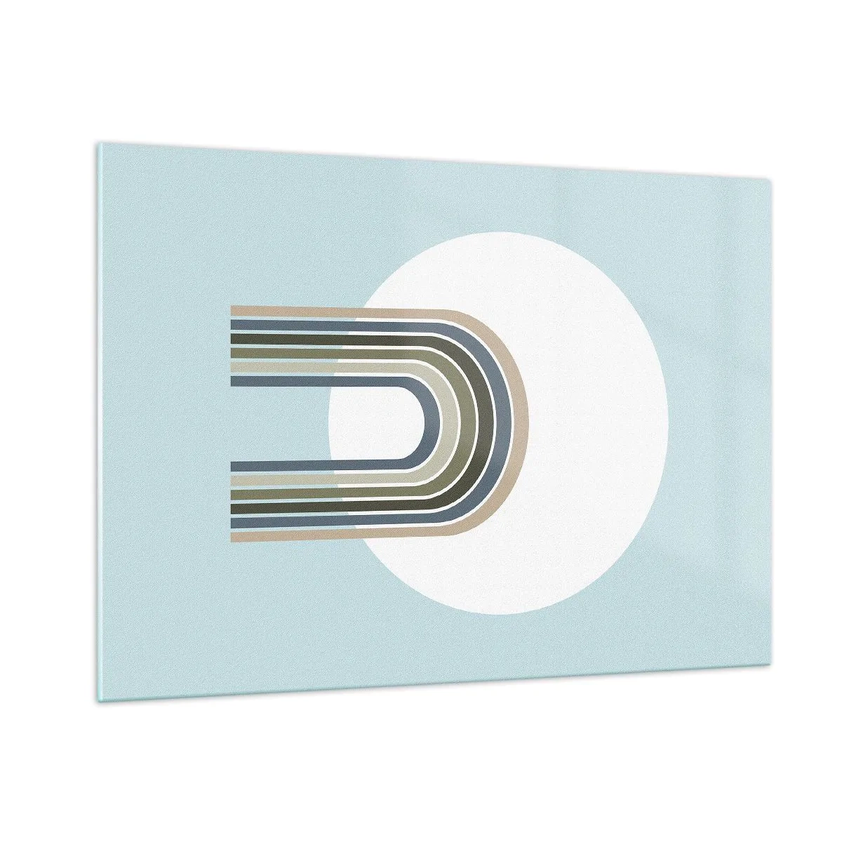 Glasbild - Bild auf glas - Eine abstrakte Komposition mit Bögen in zarten Blau- und Grüntönen. - 100x70cm - Unwiderstehliche Anziehungskraft - Moderne Wanddekoration für Wohnzimmer und Schlafzimmer ARTTOR
