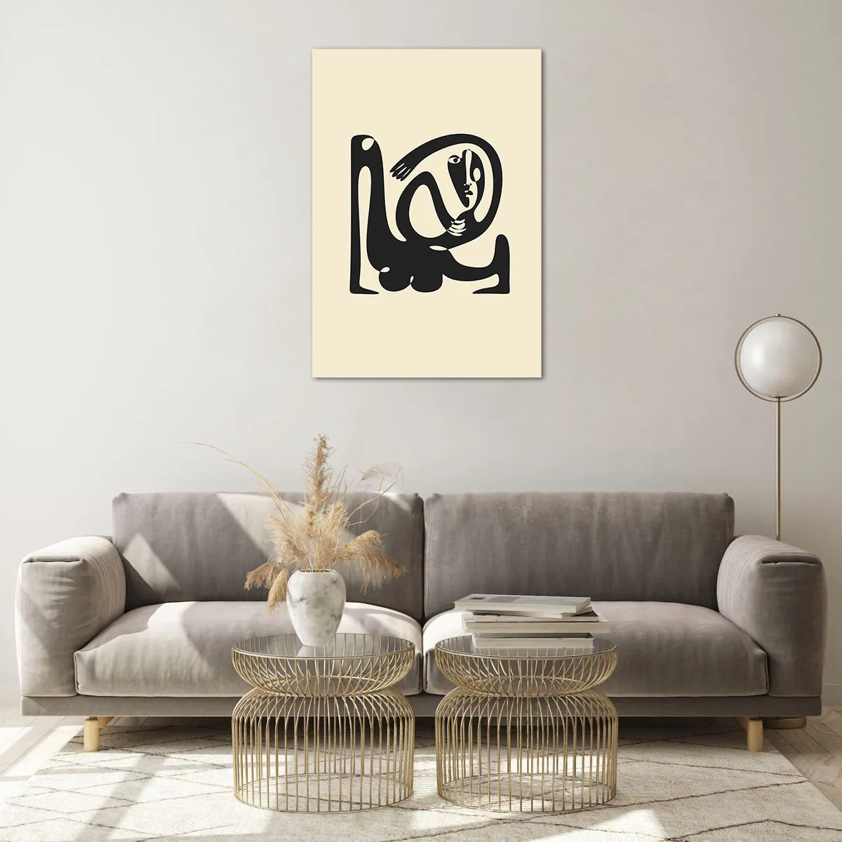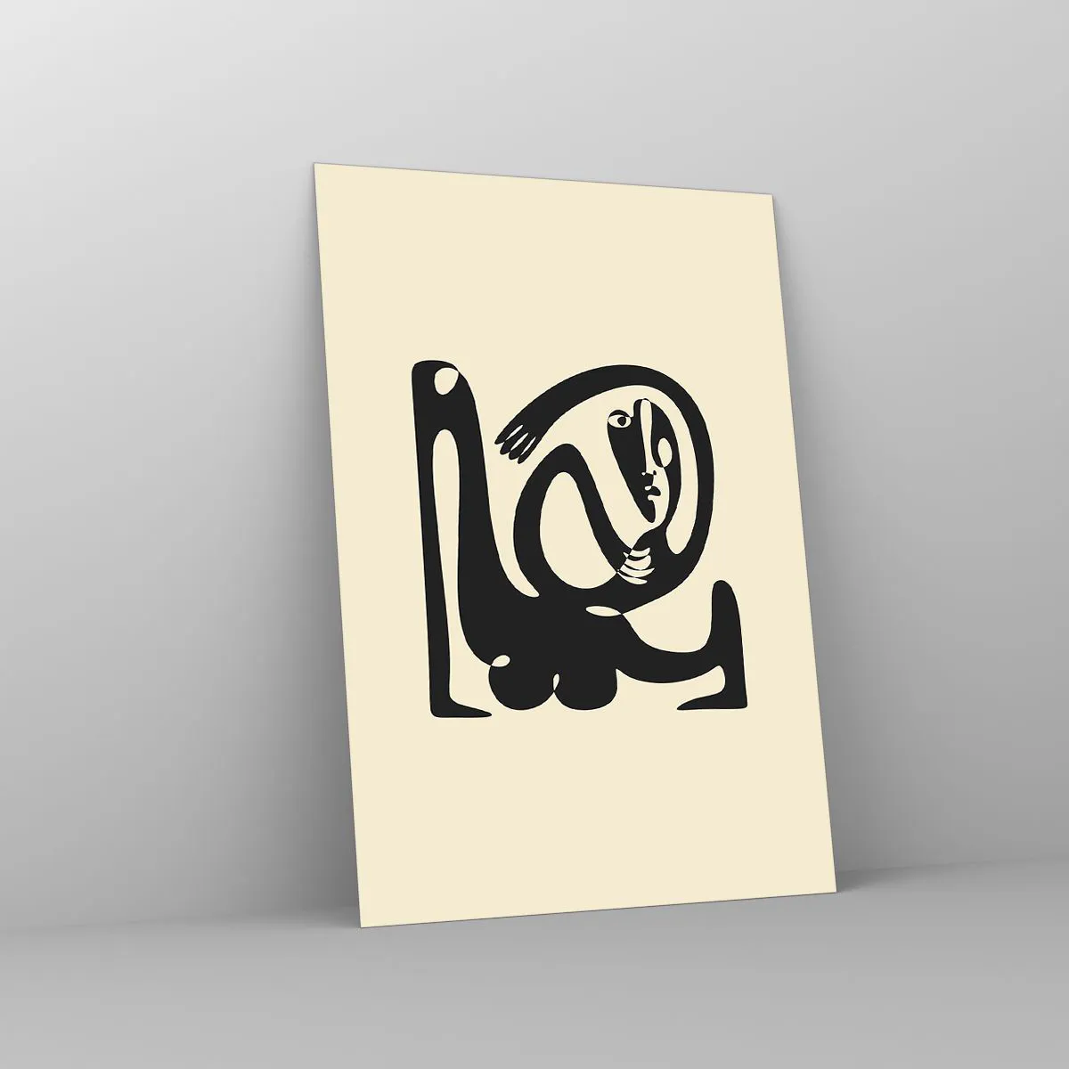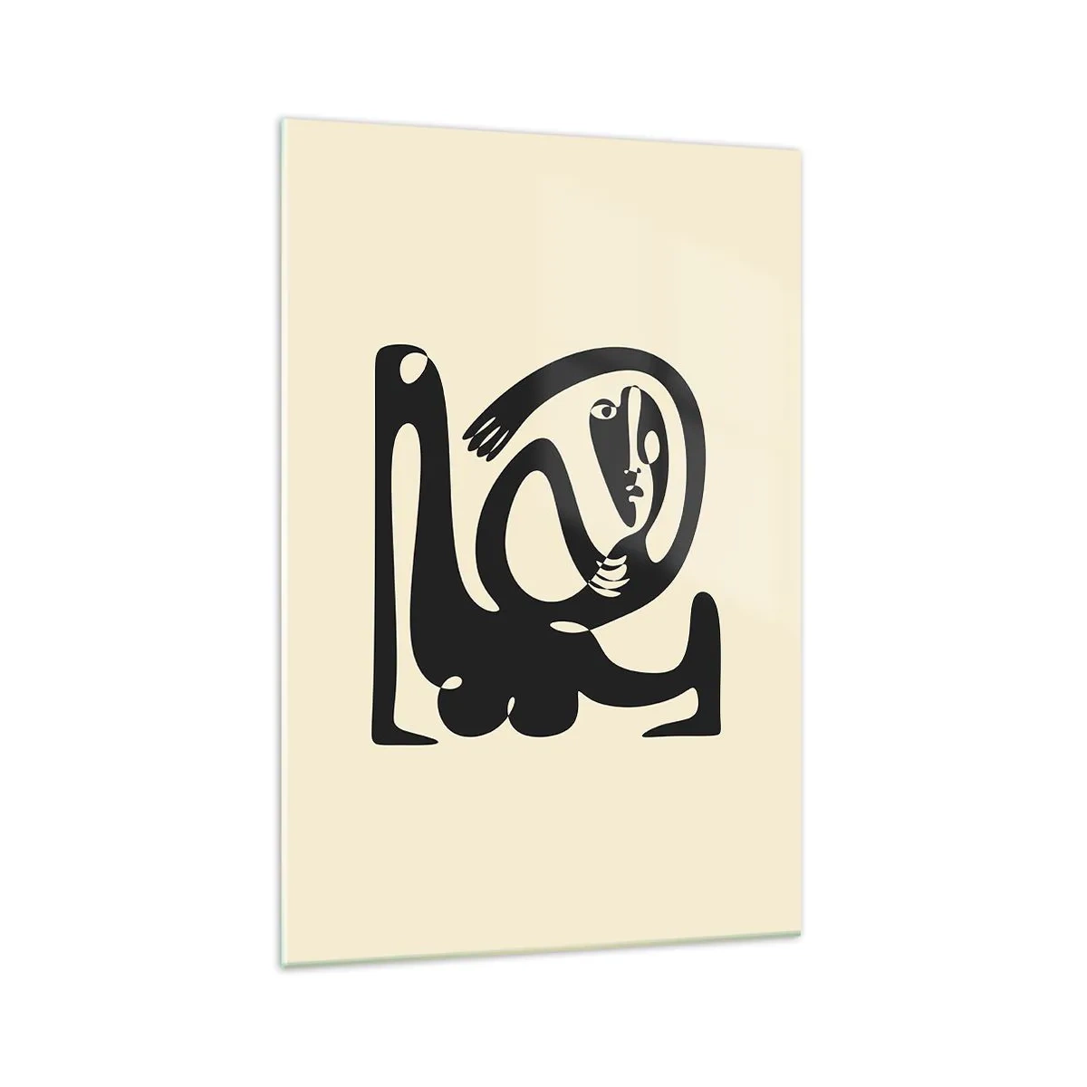 Glasbild - Bild auf glas - Eine abstrakte Figur in Schwarz auf beigem Hintergrund - 70x100cm - Fast wie Picasso - Moderne Wanddekoration für Wohnzimmer und Schlafzimmer ARTTOR